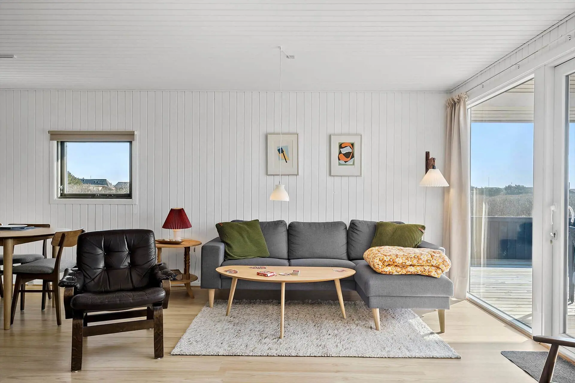 Der besagte Spiel- und Fußballplatz liegt genaugenommen schräg hinter deinem Grundstück. Über kleine Pfade kannst du dir den Küstenort schnell zu Fuß erschließen. Auch zum lokalen Supermarkt gelangst du mühelos und schnell zu Fuß. Gleich neben dem Supermarkt liegt auch ein empfehlenswertes Restaurant, das im Sommer Grillabende mit Livemusik anbietet. Wenn du aber anstelle dessen lieber das Rauschen des Meeres genießen möchtest, kannst du innerhalb weniger Minuten hinunter an Vejlby Klits schönen Sandstrand spazieren. Die Nordsee ist bei jedem Wetter ein imposanter Anblick, und du hast die Wahl, ob du lieber baden oder die Aussicht von Land aus erleben möchtest.