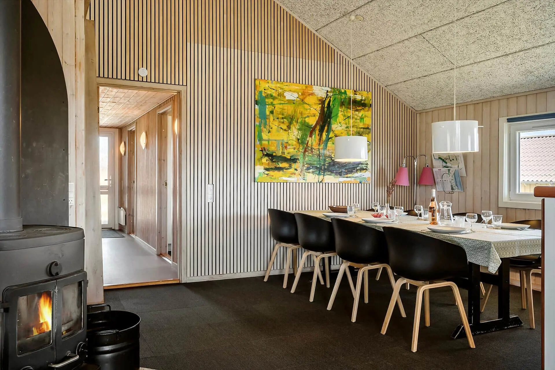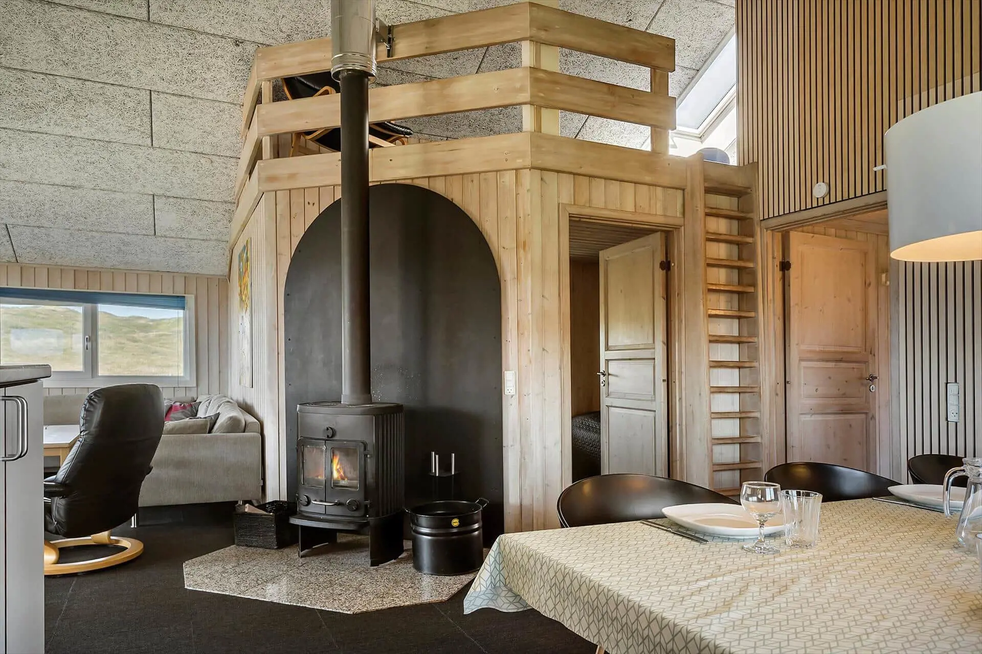 Schon beim Betreten des Ferienhauses spürst du die warme und angenehme Atmosphäre, die es dir leicht macht, dich sofort wohlzufühlen. Küche und Wohnzimmer sind offen miteinander verbunden und bilden einen gemütlichen Rahmen für gemeinsames Kochen und entspannte Stunden vor dem Kaminofen, dessen flackernde Flammen für wohlige Wärme im Raum sorgen. Das Haus verfügt über zwei Badezimmer – eines davon ist mit einem luxuriösen Whirlpool und Zugang zur Sauna ausgestattet – ideal für kalte Tage oder zum Ausklang nach einem aktiven Urlaubstag. Die Kinder werden den Hems lieben, wo sie sich mit Büchern, Spielen oder einfach nur für sich selbst zurückziehen können. Und wenn der Wunsch nach etwas Unterhaltung aufkommt, bietet der Wintergarten mit Billardtisch die perfekte Kulisse für fröhliche Wettkämpfe und gemeinsame Lachmomente.