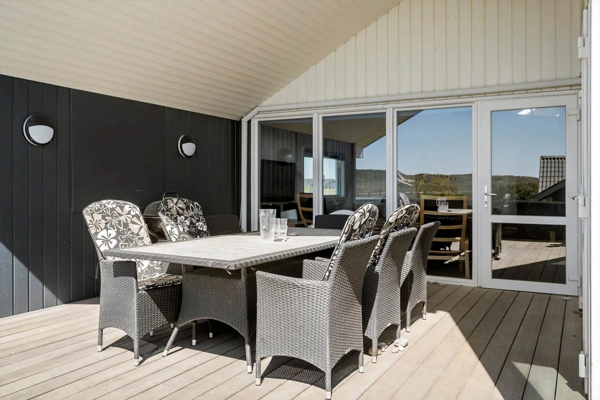 Durch die Lage des Hauses in einer ruhigen und naturschönen Umgebung hast du beste Voraussetzungen, um das Leben im Freien in vollen Zügen zu genießen. Auf der Terrasse kannst du deinen Morgenkaffee in der Sonne trinken und dabei die frische Meeresluft einatmen, während du den Tag planst. Es gibt reichlich Platz für Sonnenliegen und Gartenmöbel, sodass die ganze Familie zusammen – oder auch getrennt – entspannen kann, je nachdem, wonach euch der Sinn steht. Die Kinder können sich auf der Rasenfläche austoben, während die Erwachsenen ein kühles Getränk unter freiem Himmel genießen. Ein lauer Sommerabend lässt sich perfekt bei einem Grillabend und einer Decke über den Schultern ausklingen, während du den Geräuschen der Natur lauschst und vielleicht deinen Blick zu den Dünen schweifen lässt, hinter denen die Sonne untergeht.