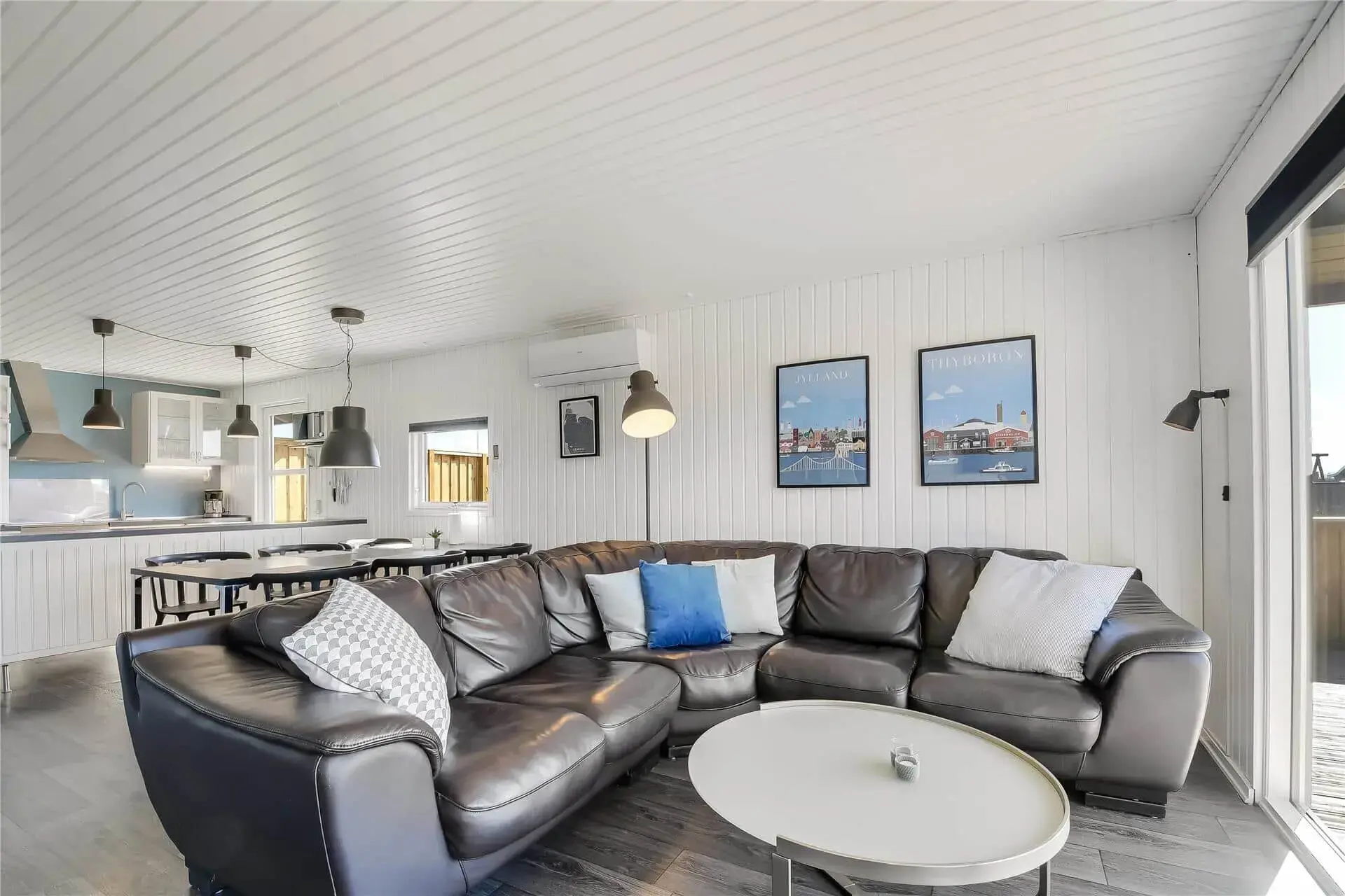 Das Ferienhaus empfängt dich mit einer hellen, freundlichen Atmosphäre. Die Einrichtung ist schlicht, aber einladend – und im offenen Wohnbereich, in dem Küche und Wohnzimmer ineinander übergehen, könnt ihr wunderbar gemeinsam Zeit verbringen: beim Kochen, Spielen oder beim entspannten Beisammensein auf dem Sofa nach einem langen Tag am Meer. Große Fenster lassen viel Licht herein und sorgen für ein Gefühl von Weite und Ruhe – während des Dufts der Meeresbrise vielleicht noch in der Nase liegt. Und wenn die Beine müde sind und der Körper nach Entspannung verlangt, ist die hauseigene Sauna der perfekte Ort für neue Energie. Ein Haus, in dem Komfort und klassisches Ferienhausgefühl Hand in Hand gehen – ideal für Paare oder Familien, die sich schnell wie zuhause fühlen möchten.