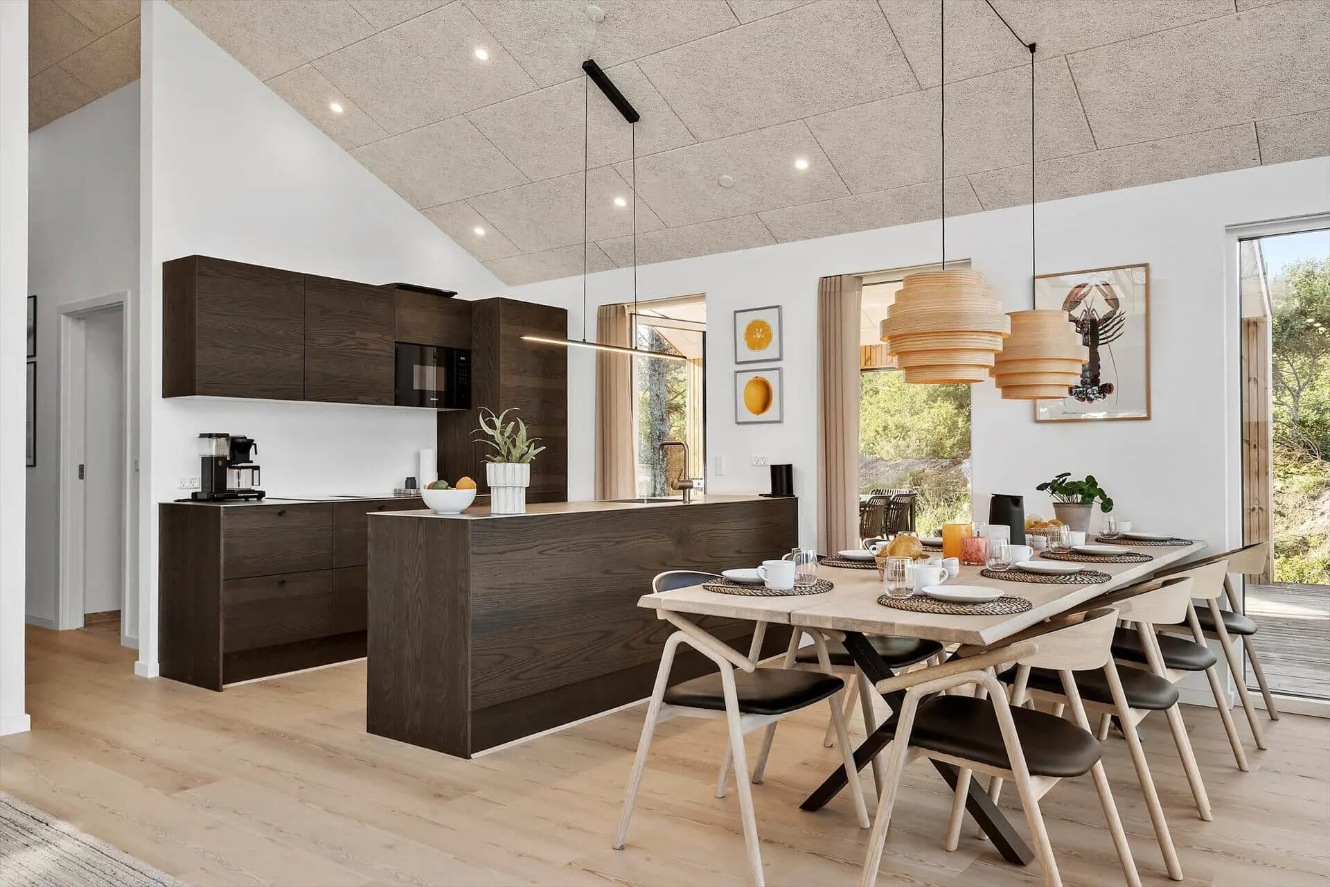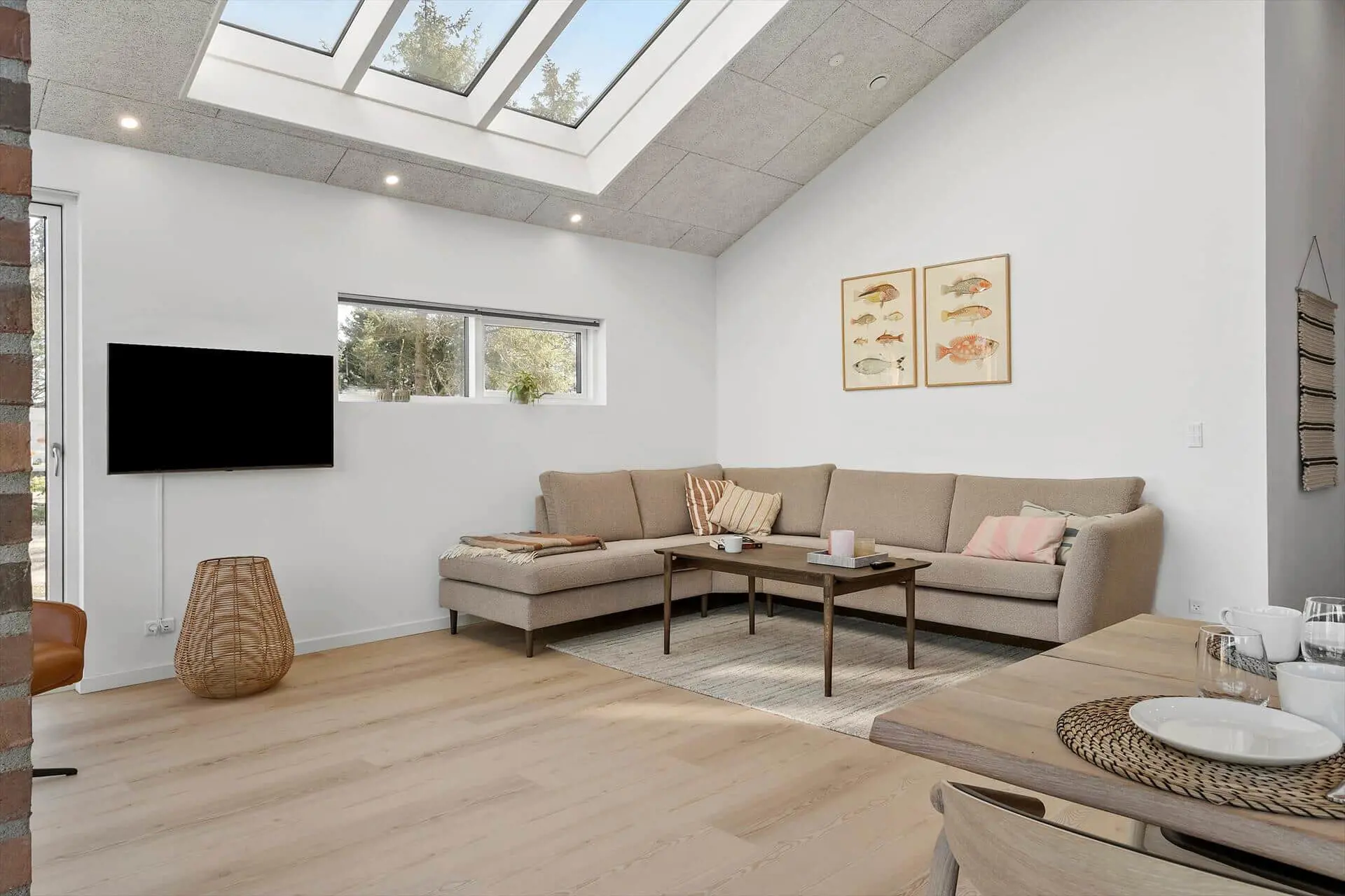 Beim Betreten empfängt dich ein ganz neues Ferienhaus, das mit viel Liebe zum Detail auf Komfort und Ästhetik eingerichtet wurde. Helle Farben und moderne Materialien schaffen eine einladende Atmosphäre, in der sowohl Entspannung als auch gemütliches Beisammensein ihren Platz finden. Der offene Küchen- und Wohnbereich bildet den natürlichen Mittelpunkt des Hauses, und das großzügige Wohnzimmer lädt zu Filmabenden und langen Brettspielrunden ein. Wenn der Abend hereinbricht, kannst du dich auf eines der ruhigen Schlafzimmer zurückziehen. Das Ferienhaus ist ideal für kleine Familien und Paare, die sich mit einer modernen und gut ausgestatteten Unterkunft verwöhnen möchten.