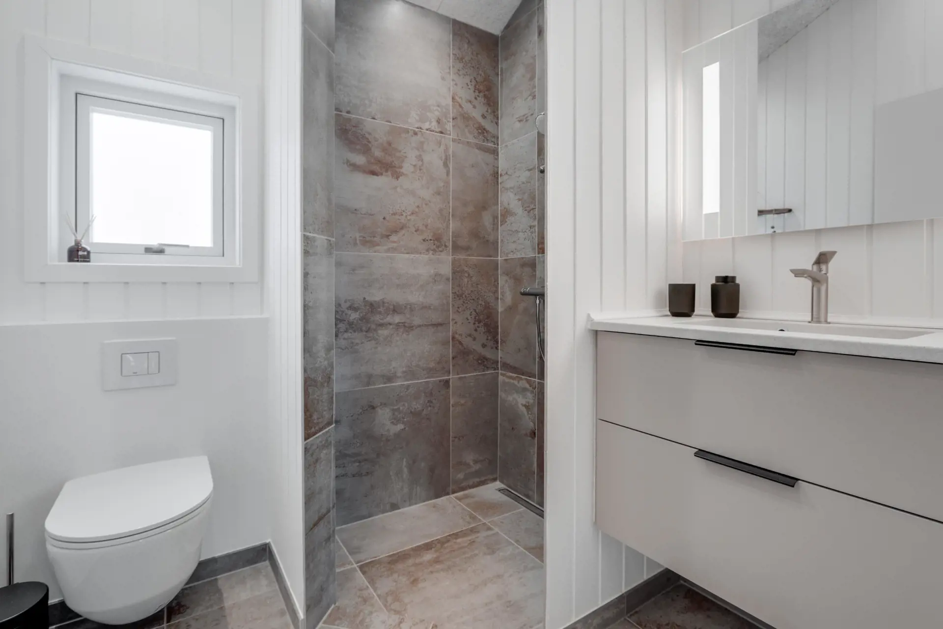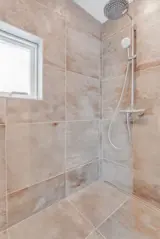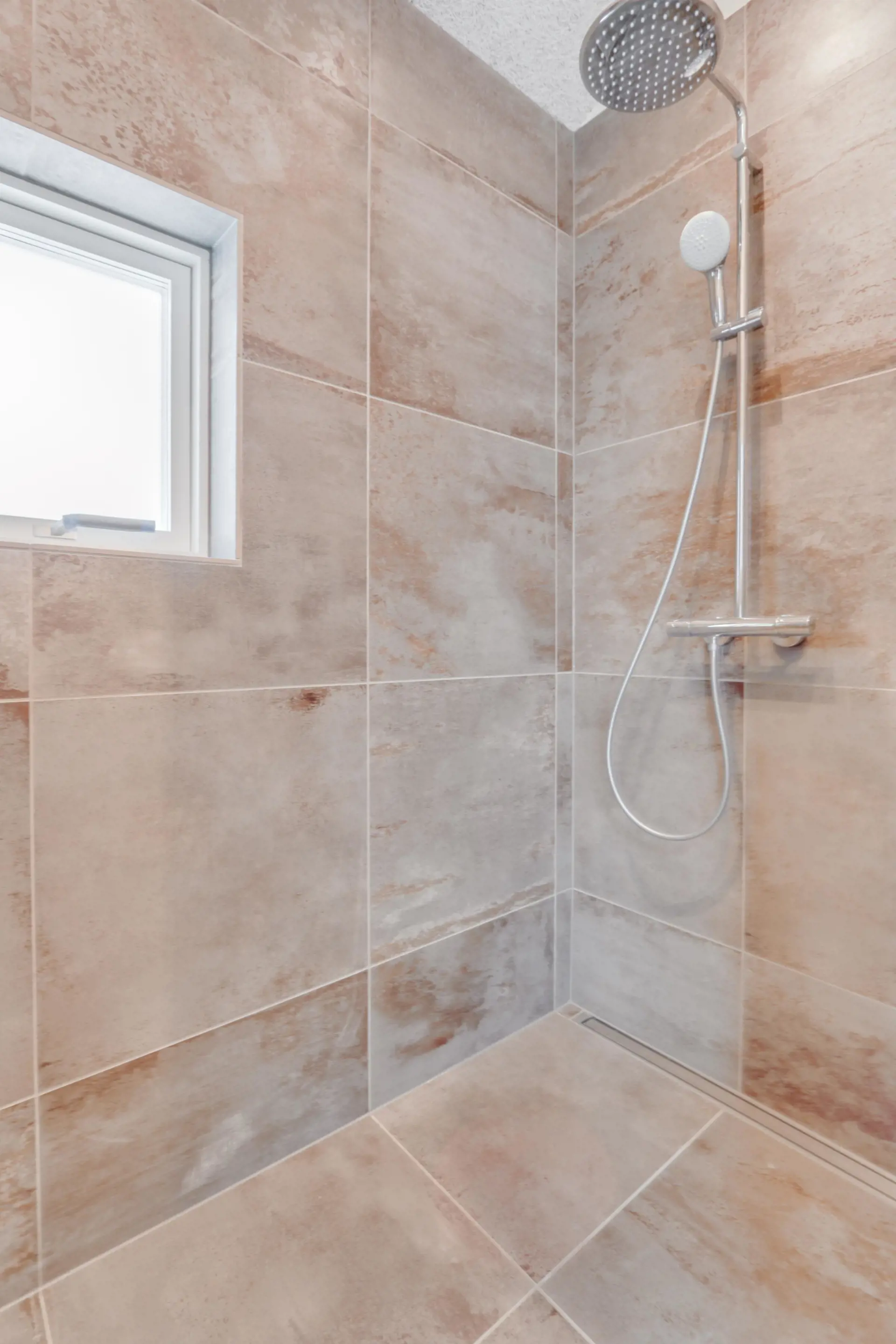 Es gibt zwei Badezimmer mit Dusche – eines davon zusätzlich mit Sauna und direktem Zugang zur Terrasse mit Whirlpool.