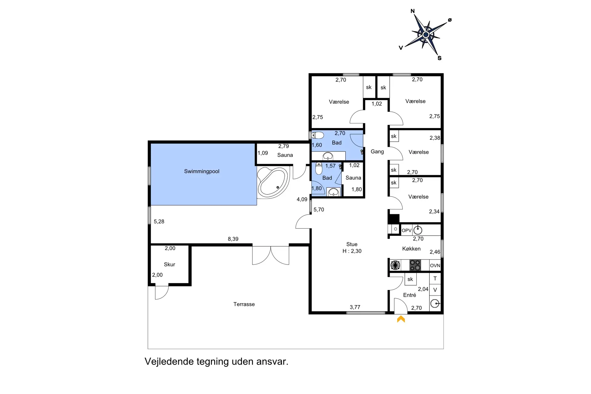 Das Haus verfügt über 4 Schlafzimmer mit Doppelbetten (DB) und Einzelbetten (EB): 1 DB + 1 DB + 2 EB + 2 EB. Kinderbett. Die 2 Badezimmer sind mit Dusche und Fußbodenheizung ausgestattet. Eines der Badezimmer befindet sich im Poolraum, wo auch ein großer neuer Whirlpool zur Verfügung steht. Hier gibt es einen 3 x 6 m großen und 1,50 m tiefen Pool mit Unterwasserbeleuchtung und Gegenstromanlage, der Pool wird mit die Wärmepumpe aufgeheisst und es hilft dabei die Nebenkosten Rechnung niedriger zu machen. Im Pool schwimmen Sie entspannt Ihre Runden um sich anschließend in der Sauna aufzuwärmen. Ab 2026 gibt es eine Luft zu Luft Wärmepumpe im Haus. 2 Hunde sind erlaubt. Nichtraucherhaus. Wenn Sie ein Elektroauto oder einen Plug-in-Hybrid haben, verfügt das Haus über eine Ladegerät, Type 2 die bis zu 11 kWh aufladen kannKaution Wintersaison EUR 400 und Sommersaison EUR 300.