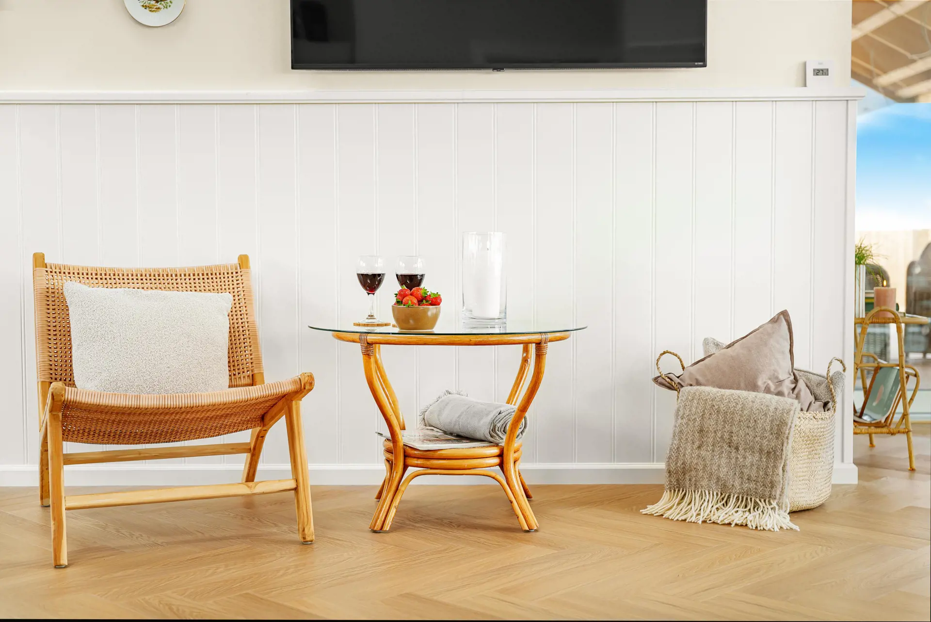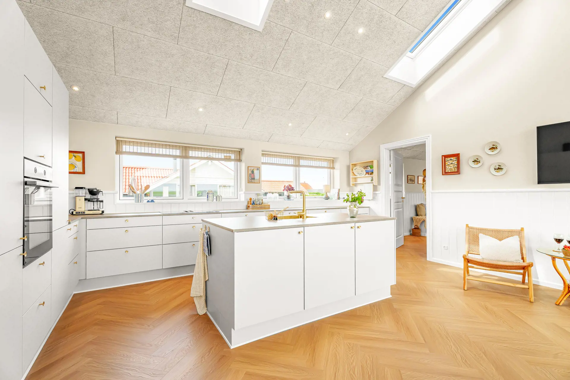 Entspannen Sie in den neuen Qualitätsmöbeln oder genießen Sie Unterhaltung über den Smart-TV mit integrierten dänischen und deutschen TV-Programmen, Radio sowie Streaming-Möglichkeiten über Glasfaser-Internet.