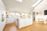 Das Haus ist mit einer energiesparenden Wärmepumpe ausgestattet, die zu niedrigen Nebenkosten beiträgt. Es ist bis zum First offen gestaltet und verfügt über eingebaute Deckenspots im gesamten Haus. Große Fensterfronten sowie zwei Dachfenster im Küchenbereich sorgen für einen fantastischen Lichteinfall.