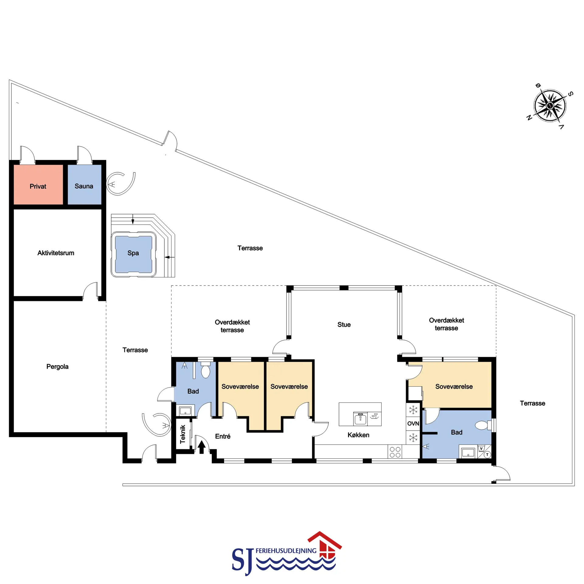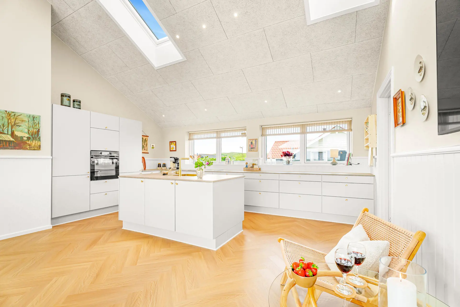 Das Haus verfügt über 155 m² Wohnfläche und bietet 3 schöne Schlafzimmer mit Doppelbetten (1DB, 1DB, 1DB), alle mit neuen und hochwertigen Betten ausgestattet. Das Herzstück des Hauses ist der große, offen gestaltete und bestens ausgestattete Wohn- und Essbereich mit Küche.