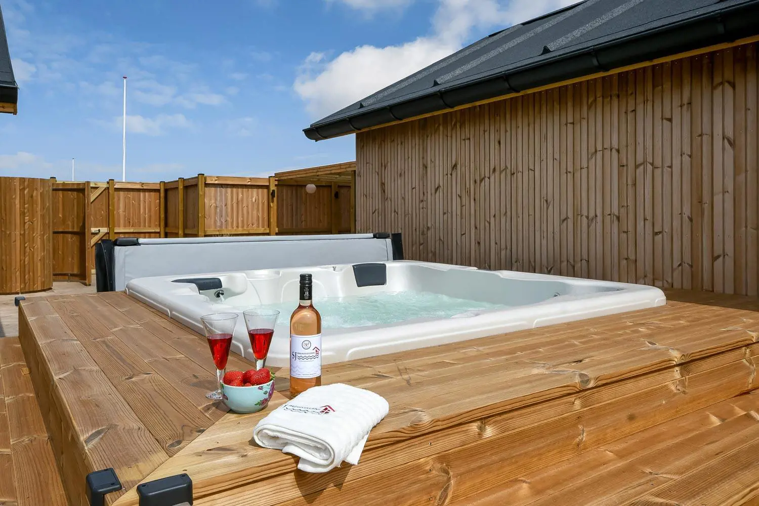 Der Außen-Whirlpool sorgt für ein ganz besonderes Erlebnis – insbesondere an dunklen Abenden unter dem klaren Sternenhimmel. Eine Außendusche befindet sich in unmittelbarer Nähe des Whirlpools, sodass man sich vor dem Bad kurz abduschen kann. Ein Erlebnis, das Körper und Seele guttut.