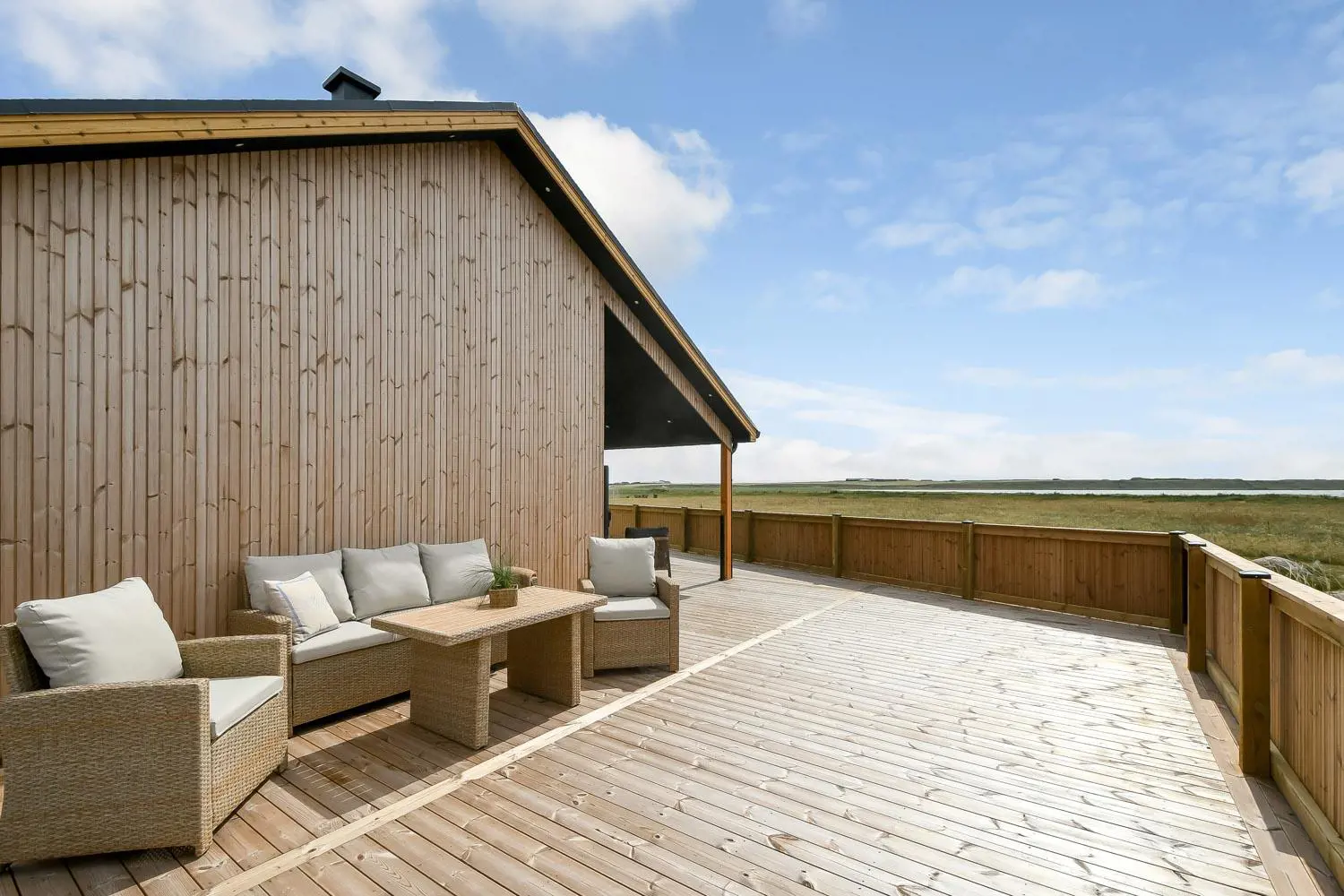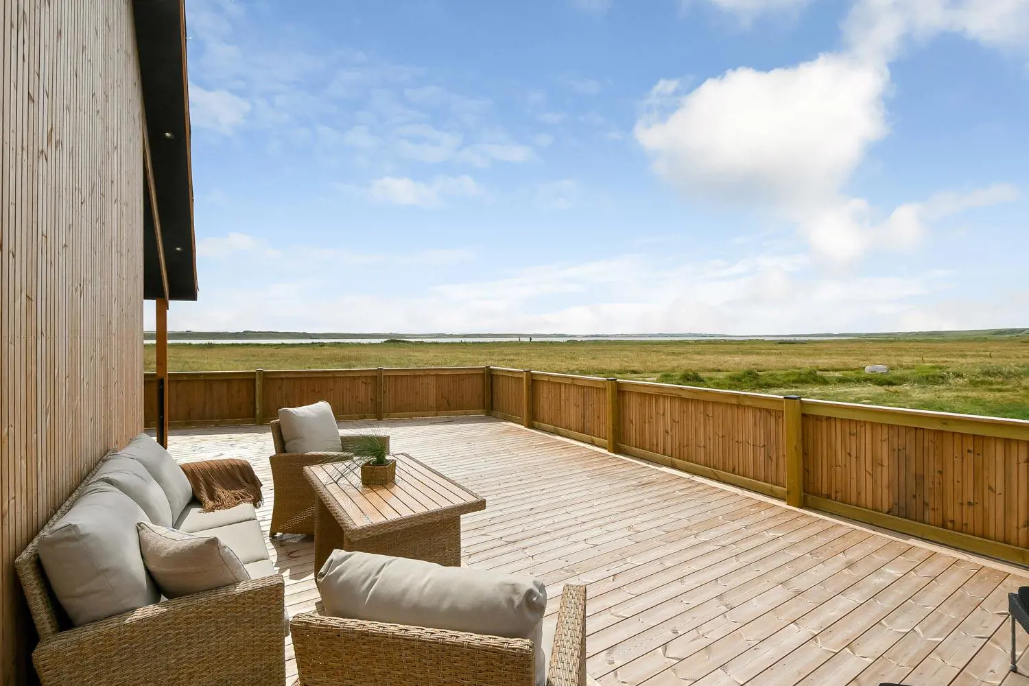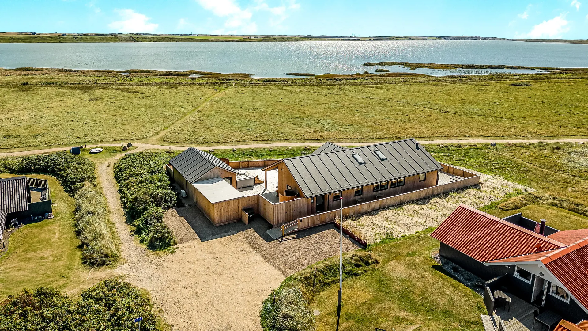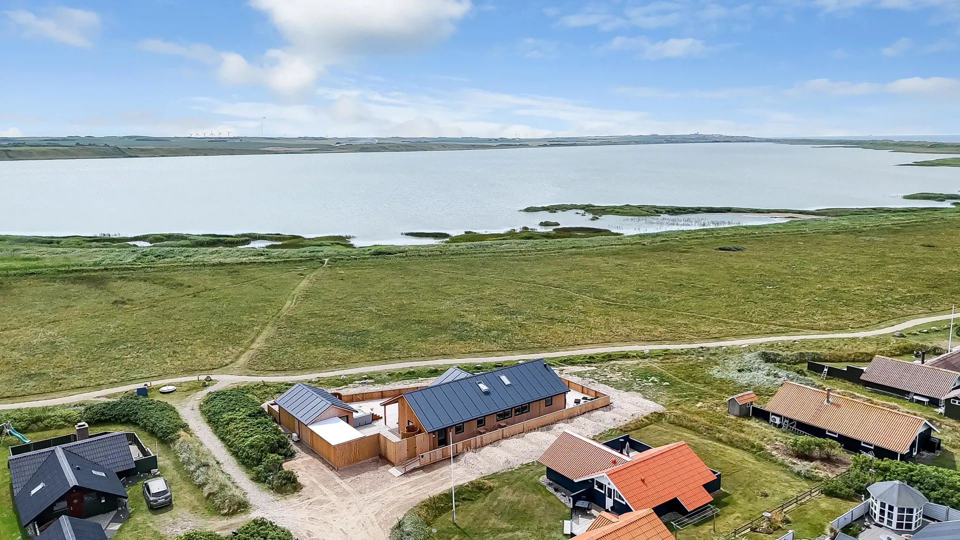 Das Haus liegt als erstes Haus an der Naturschutzlinie mit direktem Blick auf den Ferring See. Sowohl vom Haus als auch von der Terrasse genießt man eine einmalige Aussicht. Dieses wunderschöne Ferienhaus aus Holz ist etwas ganz Besonderes.