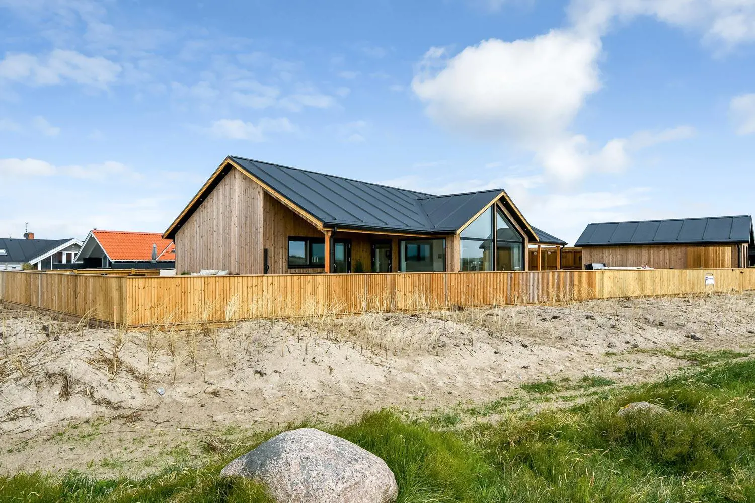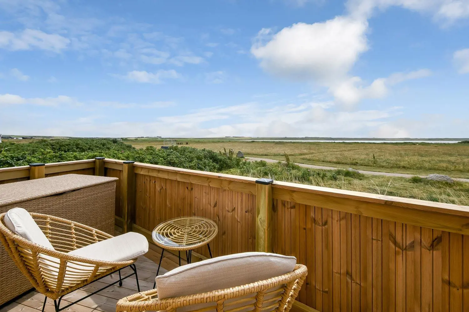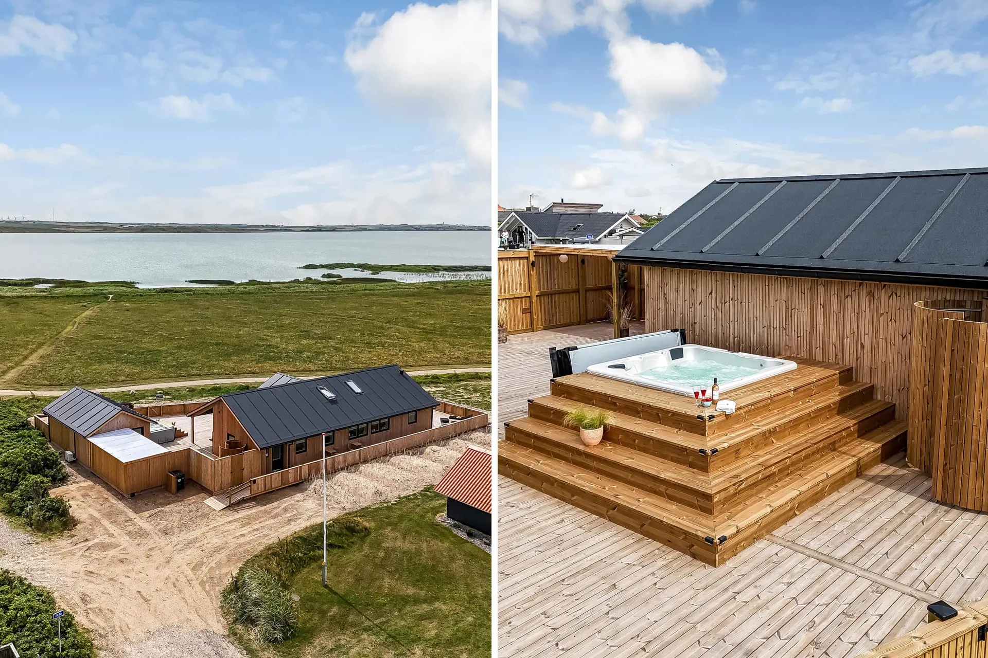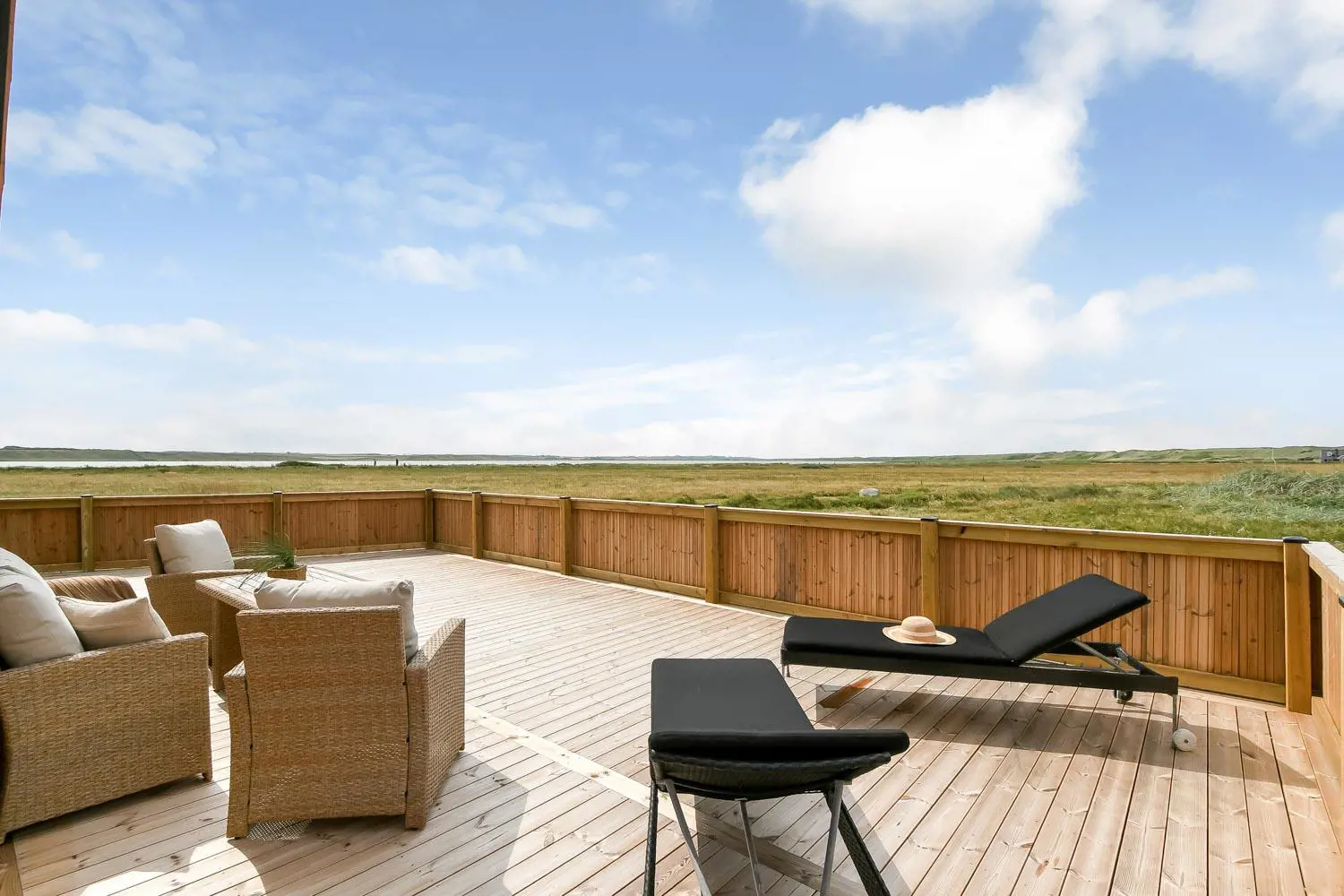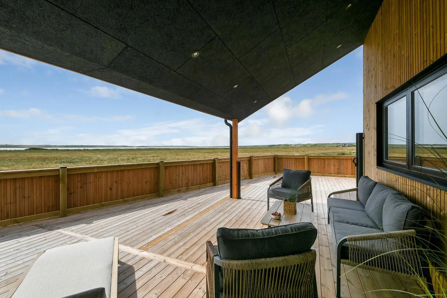 Das Haus liegt als erstes Haus an der Naturschutzlinie mit direktem Blick auf den Ferring See. Sowohl vom Haus als auch von der Terrasse genießt man eine einmalige Aussicht. Dieses wunderschöne Ferienhaus aus Holz ist etwas ganz Besonderes.