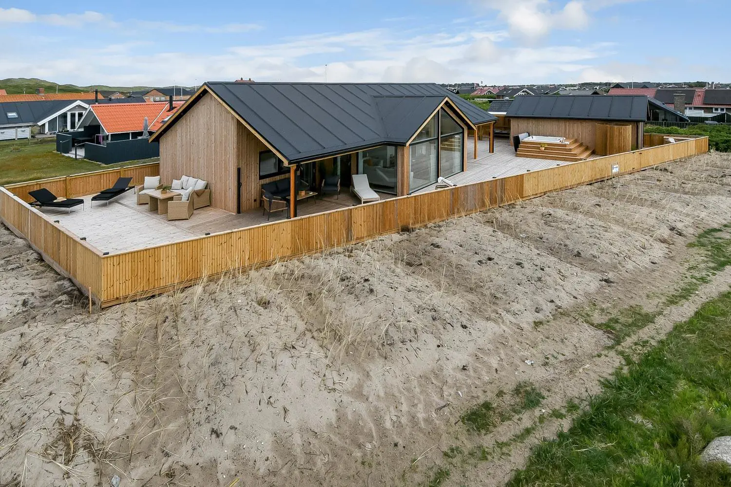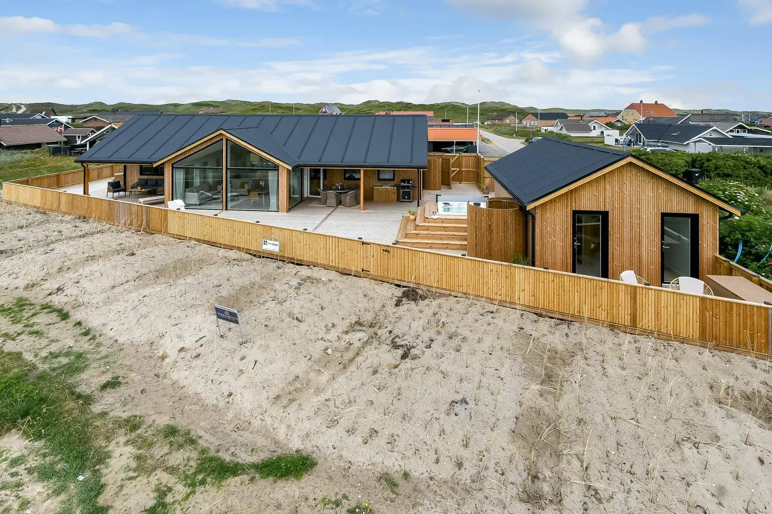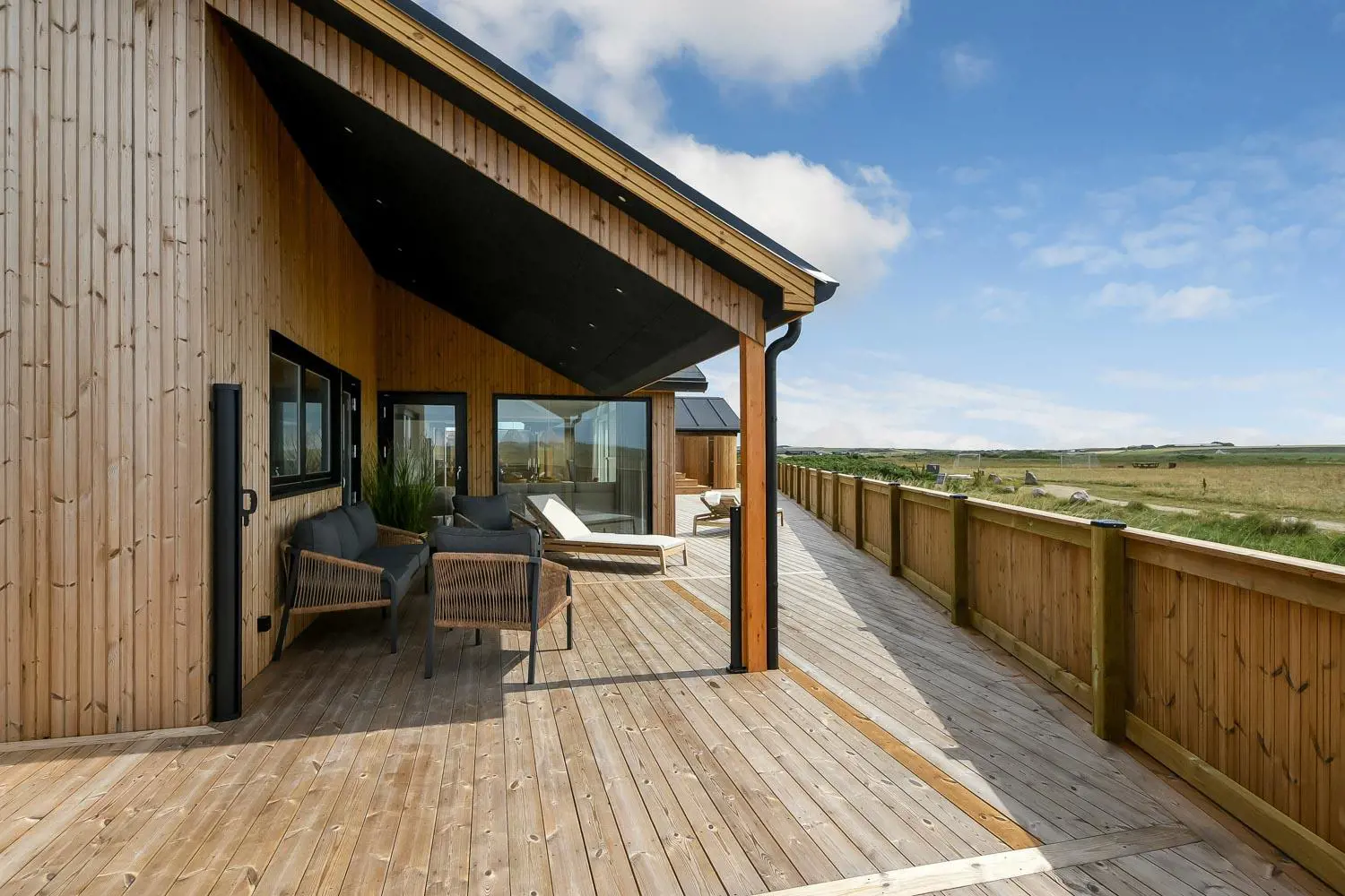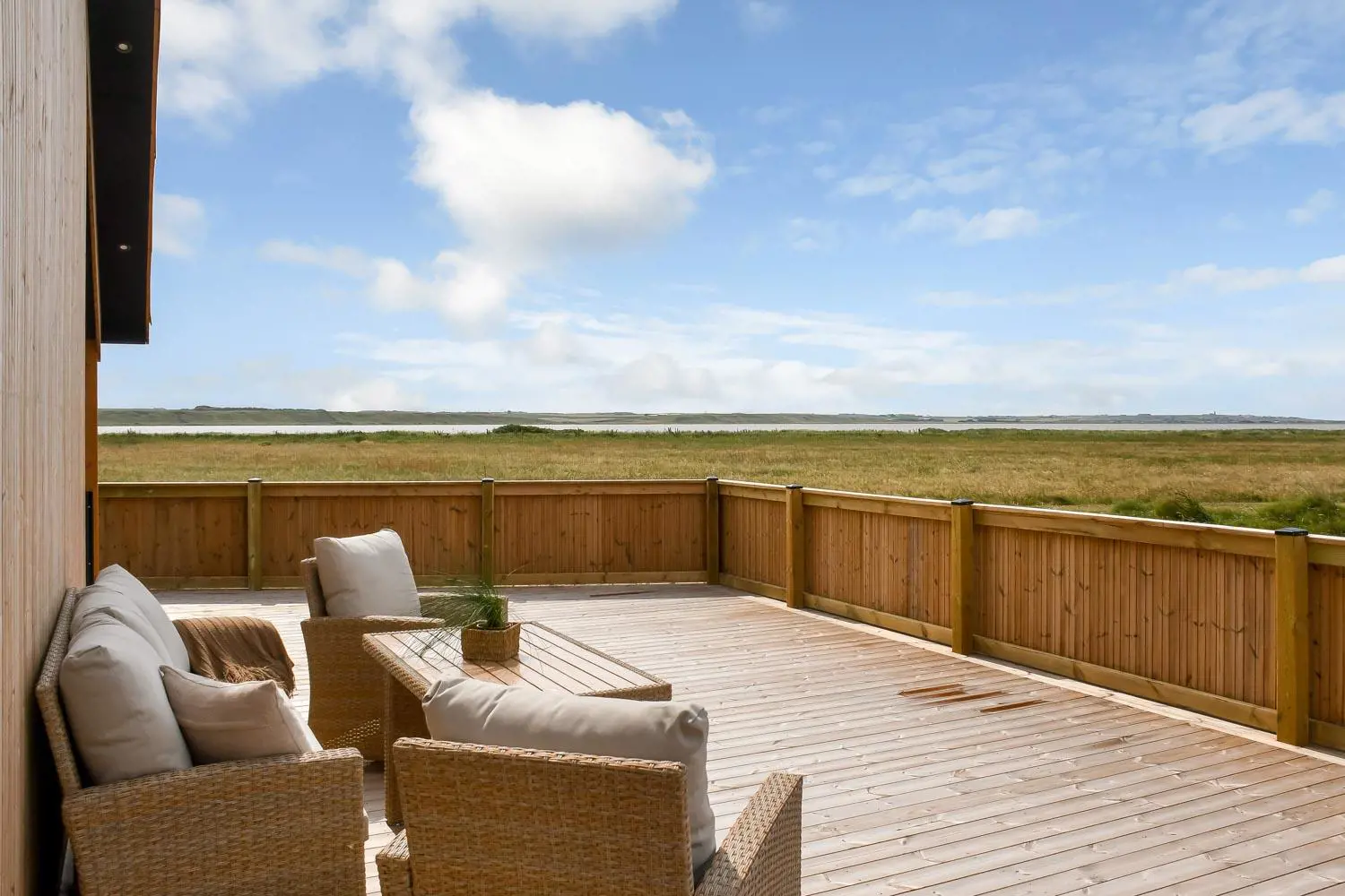Das Haus liegt als erstes Haus an der Naturschutzlinie mit direktem Blick auf den Ferring See. Sowohl vom Haus als auch von der Terrasse genießt man eine einmalige Aussicht. Dieses wunderschöne Ferienhaus aus Holz ist etwas ganz Besonderes.