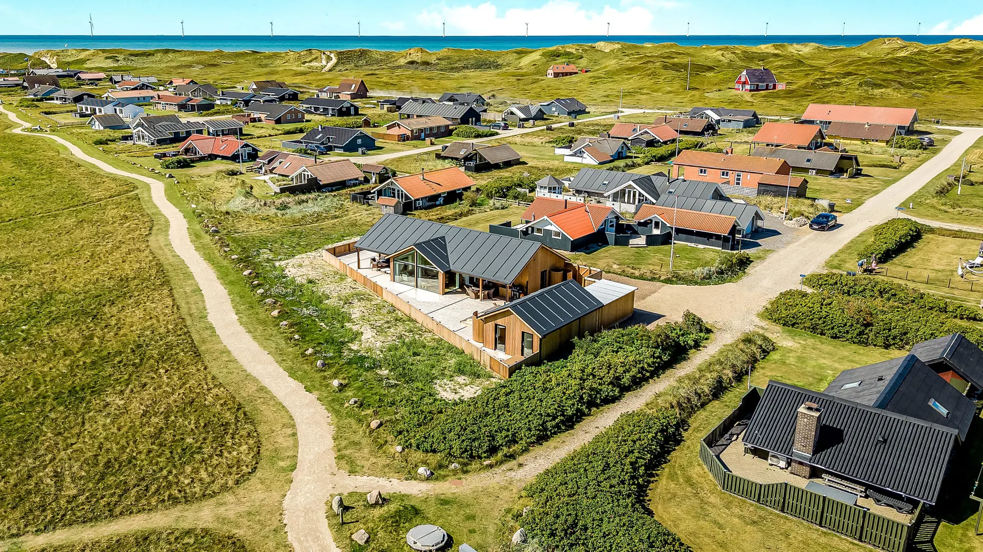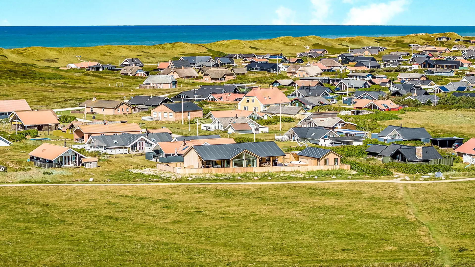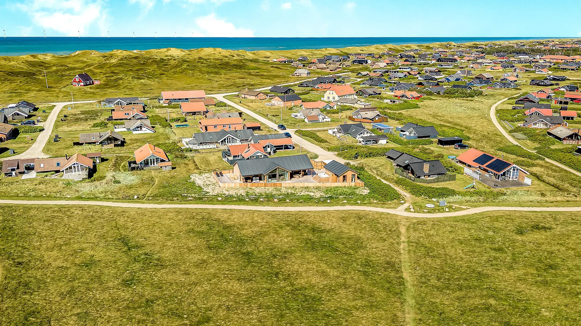Darüber hinaus liegt das Haus in der Nähe einer der schönsten Rad- und Wanderstrecken Westjütlands, die u. a. gleichzeitig Ausblicke auf See und Meer bietet. Einkaufsmöglichkeiten und Restaurants befinden sich ebenfalls in der Nähe. Der nächste saisongeöffnete Kaufmann liegt nur 400 Meter entfernt am Vejlby Torv, wo sich auch ein Café und ein Restaurant befinden.
