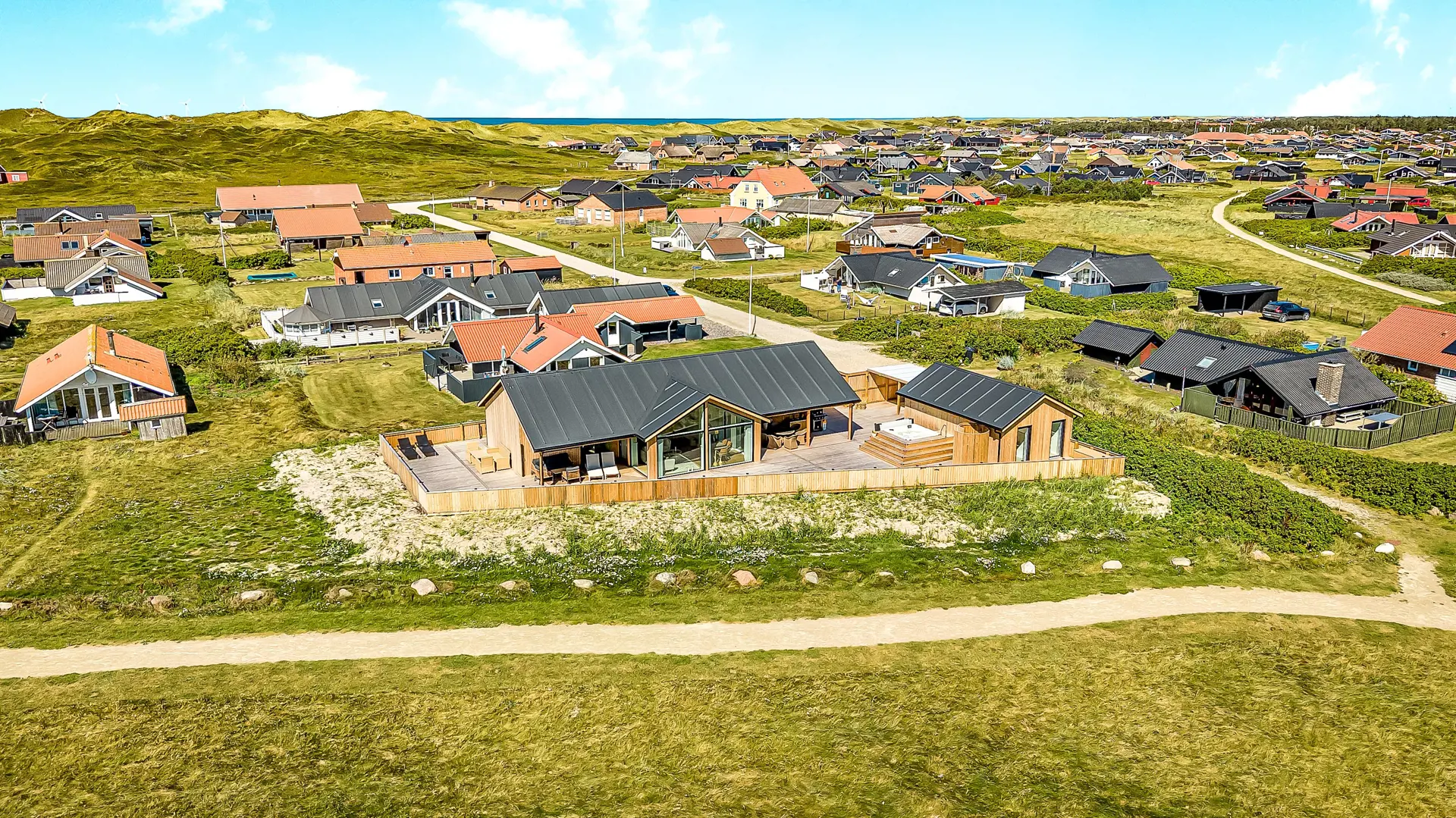 Das Ferienhaus liegt auf einem der besten Grundstücke in Vejlby Klit, angenehm weit entfernt von der Straße. Über einen Pfad durch das geschützte Naturgebiet gelangt man direkt zum Ferring See, der nur 80 Meter entfernt liegt. Rund um den See führt ein angelegter Wanderweg, auf dem man die Natur hautnah erleben kann.