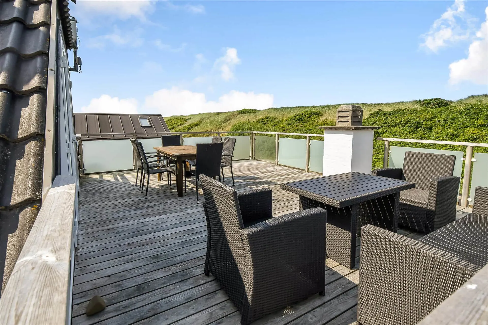 Die Außenbereiche stehen den Innenräumen in nichts nach. Genieße die Morgensonne mit einer Tasse Kaffee auf der Terrasse, lass die Kinder im Garten spielen oder spaziere nur ein paar Schritte zu den Dünen, um den Sand unter den Füßen zu spüren. Die schönen Außenflächen rund ums Haus laden zu Entspannung und Spiel ein, und das große Grundstück bietet reichlich Platz für Ballspiele oder ruhige Stunden mit Blick auf das friedliche Ferienhausgebiet. Die Terrasse – teilweise überdacht – ermöglicht dir, das Leben im Freien bei Sonne oder im Schatten zu genießen. Ideal für ein ausgiebiges Mittagessen an der frischen Luft oder gemütliche Abende unter freiem Himmel. Die frische Meeresluft, das sanfte Rauschen der Wellen und der Duft von Strandhafer schaffen die ganz besondere Stimmung, wie sie nur ein Ferienhaus in Meeresnähe bieten kann.
