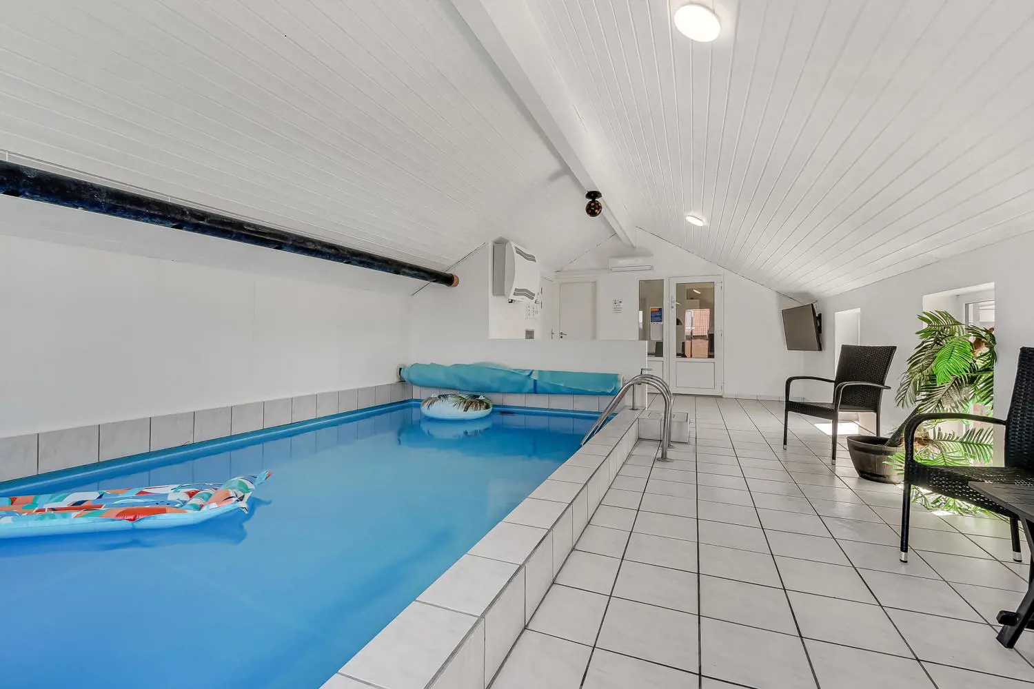 Das Haus ist 153 m² gross und hat 4 schöne Schlafräume: 1DB + 1DB + 2B + 2B mit Komfortbetten. Im Herzen des Hauses finden Sie die gut ausgestattete Küche mit Herd mit Cerankochfeld, Abzugshaube, Geschirrspüler, Mikrowelle und Kühlschrank mit Gefrierfach. Geniessen Sie Ihr Essen am Esstisch oder entspannen Sie einfach in den Ledermöbeln. Smart-TV mit dänischen und deutschen Programmen, Radio und die Möglichkeit zum Streaming. Möchten Sie die Stimmung erhöhen, dann machen Sie den Kaminofen an, wo Sie die intensive Wärme und den Blick in die Flammen geniessen können. Es gibt Fliesenboden mit Fussbodenheizung im Wohnraum und dem Küchebereich. Die Schlafräume sind mit Holzböden ausgelegt. Der Wellnessbereich des Hauses ist die Poolabteilung mit dem Whirlpool, der Sauna und natürlich auch mit dem Pool eingerichtet. 2 Badezimmer mit Toilette, Dusche, Waschbecken und Fussbodenheizung. Waschmaschine und Trockner sind natürlich auch vorhanden und stehen im Flur. Nichtraucher- Haus. Max. 2 Haustiere sind erlaubt. Kaution Wintersaison EUR 400 und Sommersaison EUR 300.