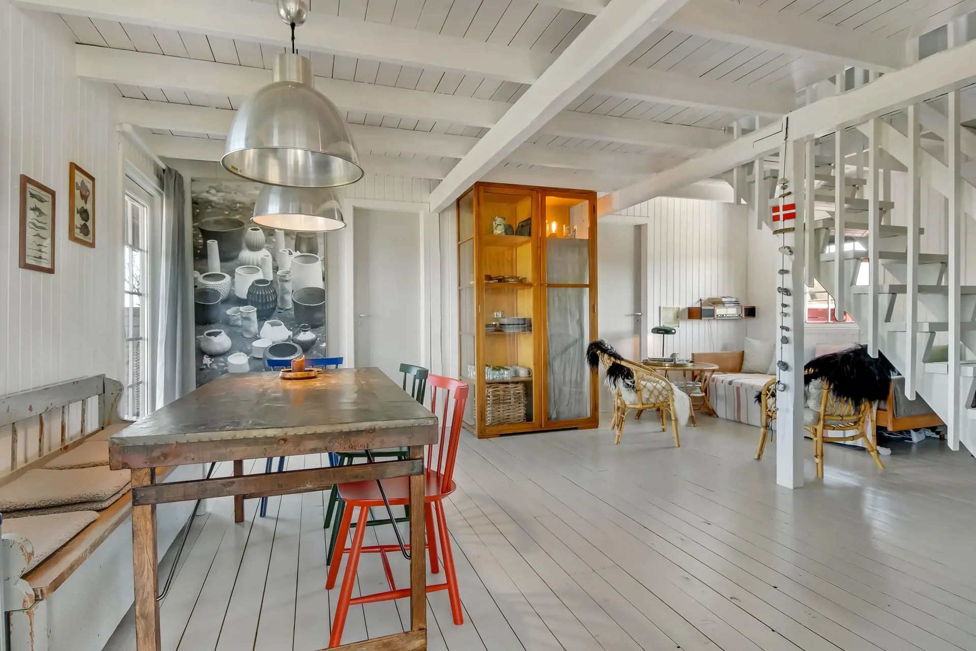 Über eine nutzerfreundliche Treppe in der Küche/Wohnraum kommen Sie einfach in den 1. Stock zu einem Wohnraum mit Couchgruppe, Smart-TV mit deutschen und dänischen Programmen. Im 1. Stock gibt es auch 2 schöne Schlafräume: 1DB + 1DB. Vom Wohnraum im 1. Stock haben Sie einen tollen Blick zu den Dünen an der Nordsee.