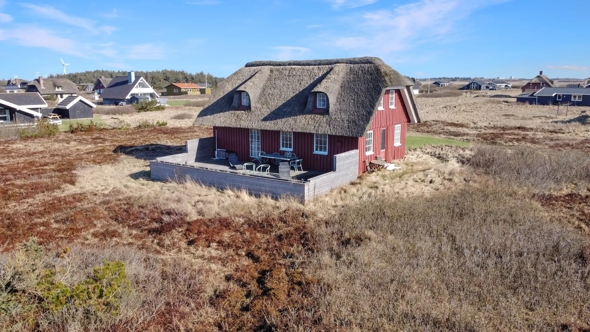 Außerhalb vom Haus gibt es eine schöne, neu angelegte eingezäunte Holzterrasse Richtung West und Süd. Hier können Sie die Sonnenliegen, Gartenmöbel und Grill nutzen. Das Haus hat auch eine Ostterrasse, wo Sie die Morgensonne genießen können. Sonst liegt die Nordsee auch nur einen kurzen Spaziergang entfernt und hier ist es immer gemütlich die Dünen hoch zu gehen und auf die Nordsee zu sehen. Im Sommer gibt es gute Bademöglichkeiten und die Kinder können Stunden damit verbringen Sandburgen zu bauen, solange können sich die Erwachsenen entspannen. Hier gibt es immer viel Platz und man kann öfter das Gefühl haben, dass man den Strand ganz alleine für sich hat. Es ist 1,5 km zur nächsten Einkaufsmöglichkeit in Vrist, geöffnet von April bis November. Aldi und Brugsen gibt es in Harboøre und es liegt bloß 2 km vom Haus entfernt. Mit dem Auto sind es ungefähr 3,5 km.