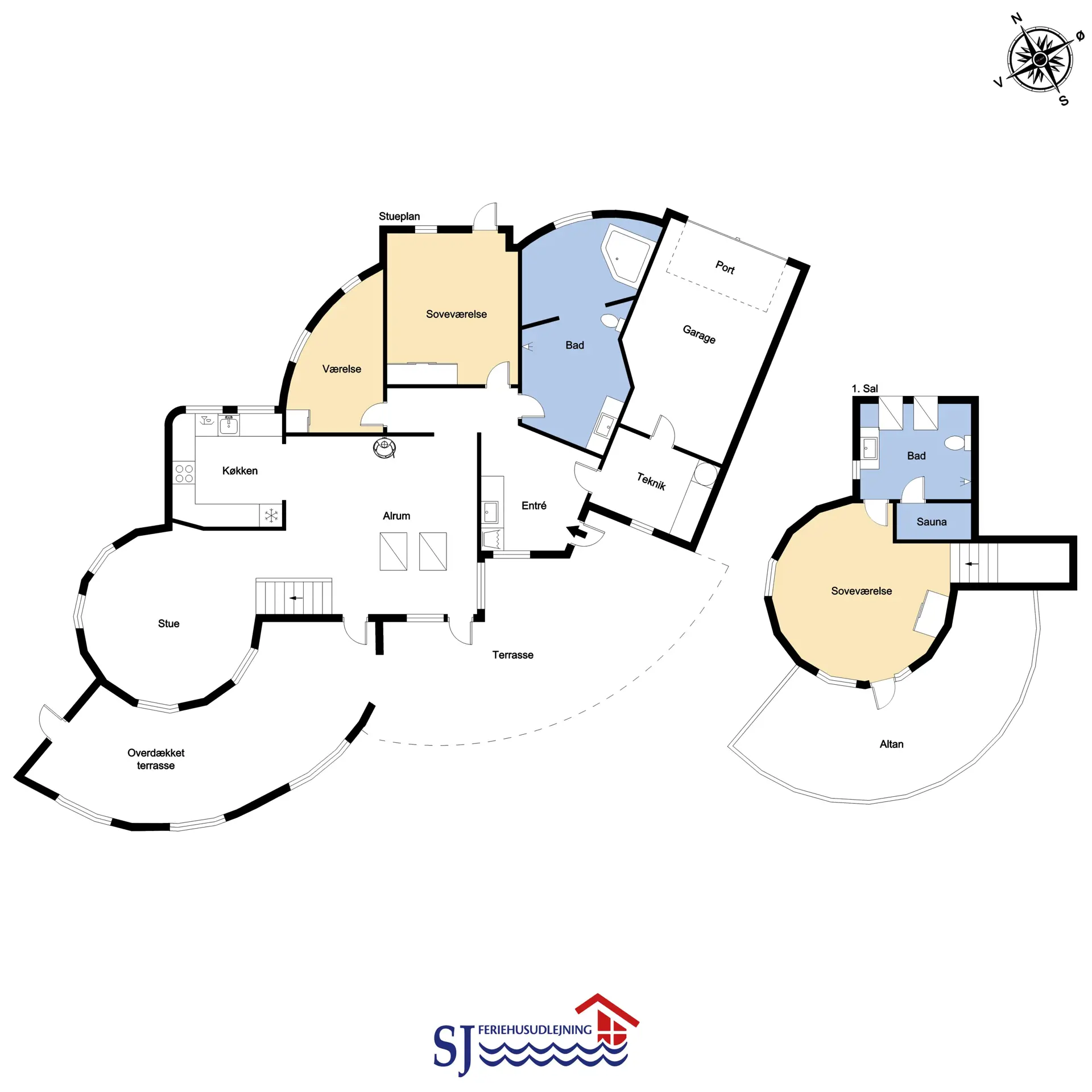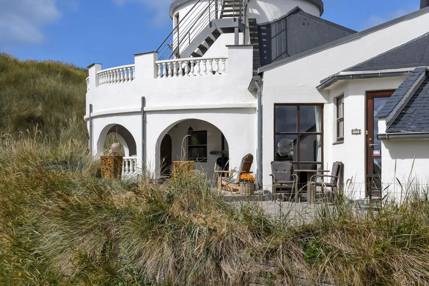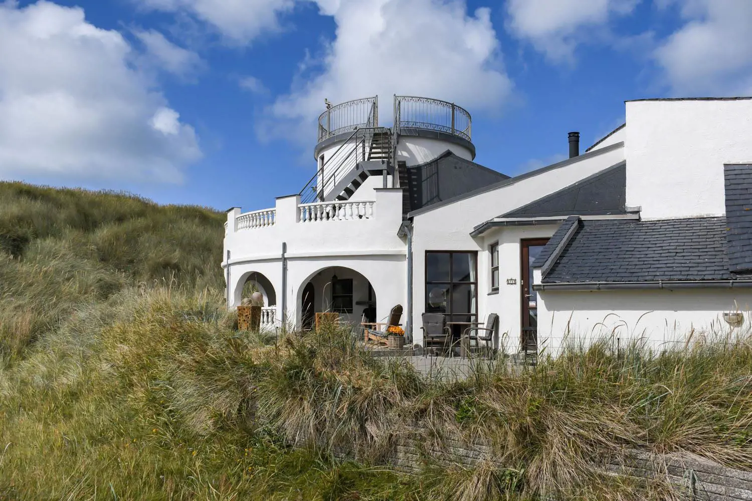 Schon wenn Sie mit Ihrem Auto über den Kiesweg das Haus erreichen, können Sie sehen, dass die Lage des Hauses etwas ganz Besonderes ist. Dieses Haus ist so einzigartig, dass man es erleben muss. Ein schöner Flur heißt Sie willkommen; hier gibt es viel Platz, um Ihre Kleidung aufzuhängen und außerdem stehen hier Waschmaschine und Trockner. Vom Flur kommen Sie in den Verteiler-Flur, hier haben Sie Zugang zu einem der Badezimmer im Haus, das sehr groß ist. Es ist mit einer Toilette, Waschbecken, Dusche, Fußbodenheizung und Whirlpool ausgestattet. In diesem Raum ist der spanische Baustil in den Vordergrund gerückt. Neben dem Badezimmer gibt einen Schlafraum mit 1DB und am Ende des Flures gibt es noch einen Schlafraum mit 1 DB. Vom Flur haben Sie Zutritt zum Esszimmer/Küche. Hier sind die Decken geöffnet und von hier gibt es einen Ausgang zu der überdachten Terrasse. Große Küche mit allem an Geschirr und Kochgeschirr; es gibt eine Induktionsplatte, einen eingebauten Ofen, Abzugshaube, Geschirrspüler, Mikrowelle und einen Kühl-/Gefrierschrank. Das Esszimmer ist eingerichtet mit einem Esstisch und einem schönen Kaminofen, der für eine gute Wärme sorgt, auch an kalten Tagen. Vom Esszimmer kommen Sie über einen kleinen Treppenaufgang zum „ Master Bedroom“ des Hauses mit einem DB; von hier haben Sie Zugang zu dem zweiten Badezimmer des Hauses mit Toilette, Waschbecken, Dusche und Zugang zu der Sauna. Von diesem Schlafraum haben Sie einen Ausgang zu einer offenen Terrasse, von der Sie den Blick auf die Dünen genießen können. Von dieser Terrasse kommen Sie über eine Treppe hoch auf die runde Terrasse ganz oben auf dem Turm. Von hier aus gibt es einen wunderschönen Blick über die Nordsee und über das ganze Gebiet um Vrist herum. Haben Sie ein Elektro-Auto oder einen Plug-in Hybrid, gibt es eine Ladebox (Type 2) zum Laden. Nichtraucher-Haus. 1 Haustier ist erlaubt.
