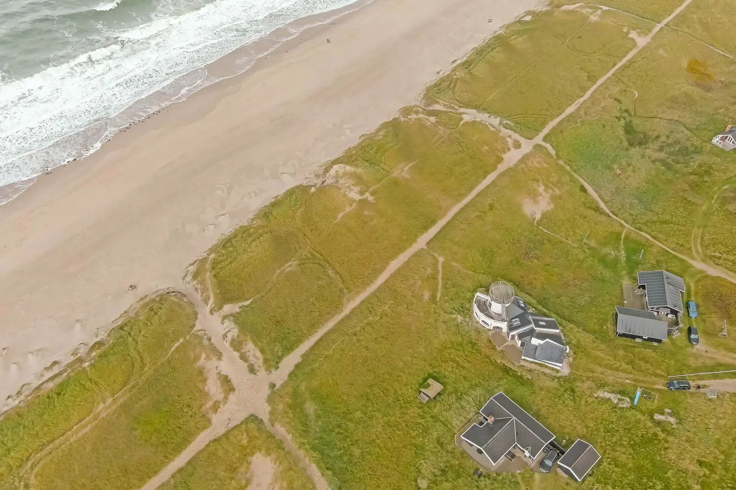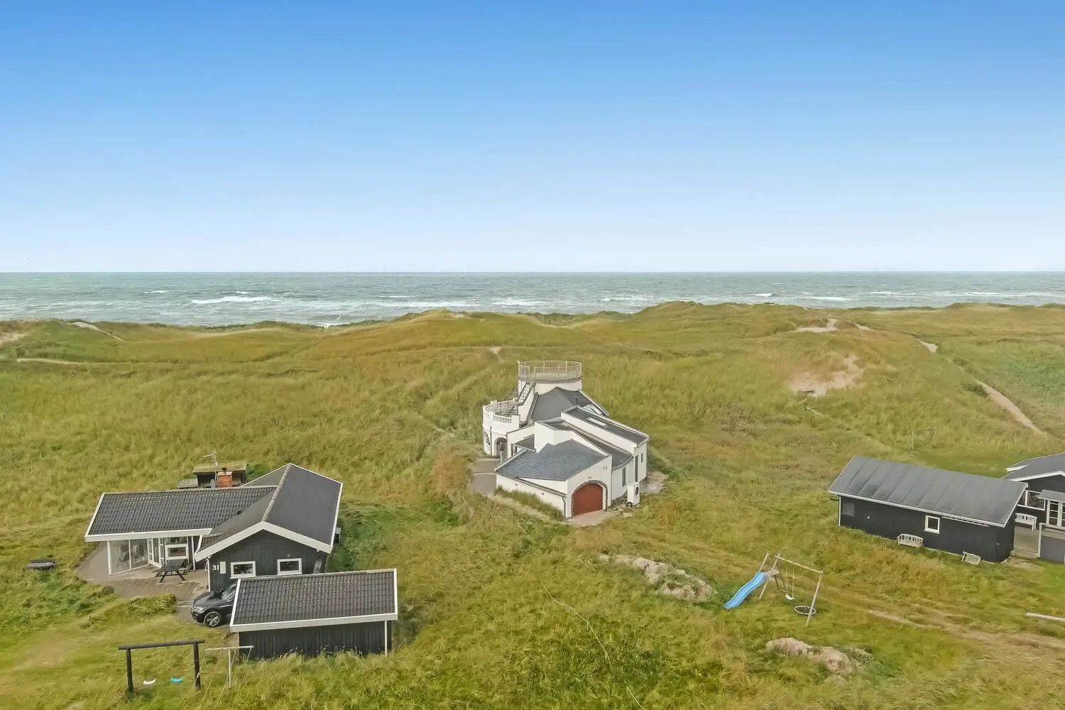Das Haus liegt auf einem Dünengrundstück ganz nah an der Nordsee. Das Haus hat eine der besten Lagen im ganzen Gebiet. Das Haus hat mehrere Terrassen; die 1. Terrasse im Erdgeschoss ist überdacht und hier wird der spanische Baustil in den Vordergrund gerückt; hier gibt es natürlich Gartenmöbel und Grill und es ist die perfekte Stelle, um sich hier aufzuhalten, wenn es draußen sehr warm ist, weil es hier immer sehr viel kühler ist. Vom 1. Stock gibt es einen Ausgang zu einer weiteren Terrasse und von hier haben Sie einen tollen Blick zu den Dünen und über das Gebiet. Von hier gibt es noch eine Treppe, die nach oben auf den Turm führt. Hier gibt es eine runde Terrasse, von der es einen herrlichen Blick über die Nordsee und die ganze Umgebung bei Vrist gibt. Vom Haus aus sind es nur 50 m zum Strand an der Nordsee, die täglich neue Geschichten erzählt. Es gibt viele Aktivitäten, die Sie am Strand machen können, z.B. baden, schwimmen, Steine und Bernsteine suchen, Sandburgen bauen oder Drachen steigen lassen und vieles andere. Mit dem Auto können Sie schnell das Fischerdorf Thyborøn erreichen, ein ganz gemütlicher Ort mit vielen guten Restaurants, Geschäften und Attraktionen. Hier haben Sie auch die besten Möglichkeiten, frischen Fisch zu kaufen und ihn mit nach Hause zu nehmen. Fahren Sie in die andere Richtung, erreichen Sie die alte Handelsstadt Lemvig, in der es auch viele Geschäfte, Restaurants und eine sehr schöne Hafenpromenade gibt, wo es auch einen kleinen Spielplatz für die kleinsten Kinder gibt. Dieses Haus ist für Gäste, die etwas ganz Besonderes im Urlaub haben möchten, was Haus und Lage so dicht am Meer angeht.