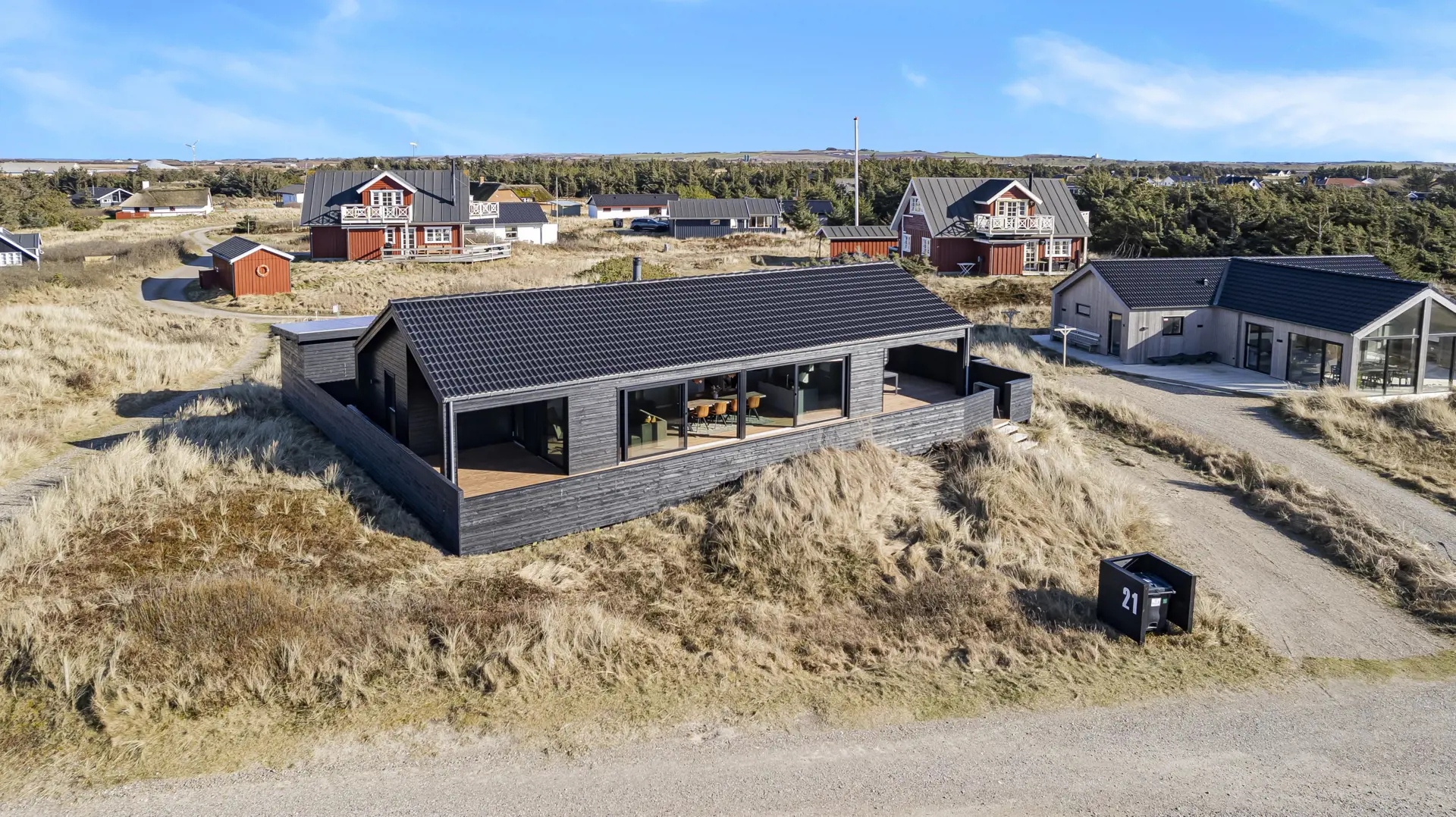 Stellen Sie sich die Frage: Mag ich die raue Natur Westjütlands? Wenn Sie diese Frage mit „Ja“ beantworten können, dann sind Sie hier genau richtig, wenn Sie im Hvilehjemsvej 21 Urlaub machen. Das Ferienhaus liegt auf einem 1.200 qm großen Naturgrundstück und etwas über dem Grund, was den Blick zu den Dünen noch besser macht. Auf der großen, geschlossenen Terrasse können Ihre Kinder frei spielen. Bloß 150 m zur Nordsee; Sie können hören und merken, dass Sie so dicht an der Nordsee wohnen, ein einmaliges Erlebnis. Es gibt direkten Zugang zur Nordsee vom Haus aus über einen kleinen Weg, damit Sie innerhalb von wenigen Minuten am Strand sind.