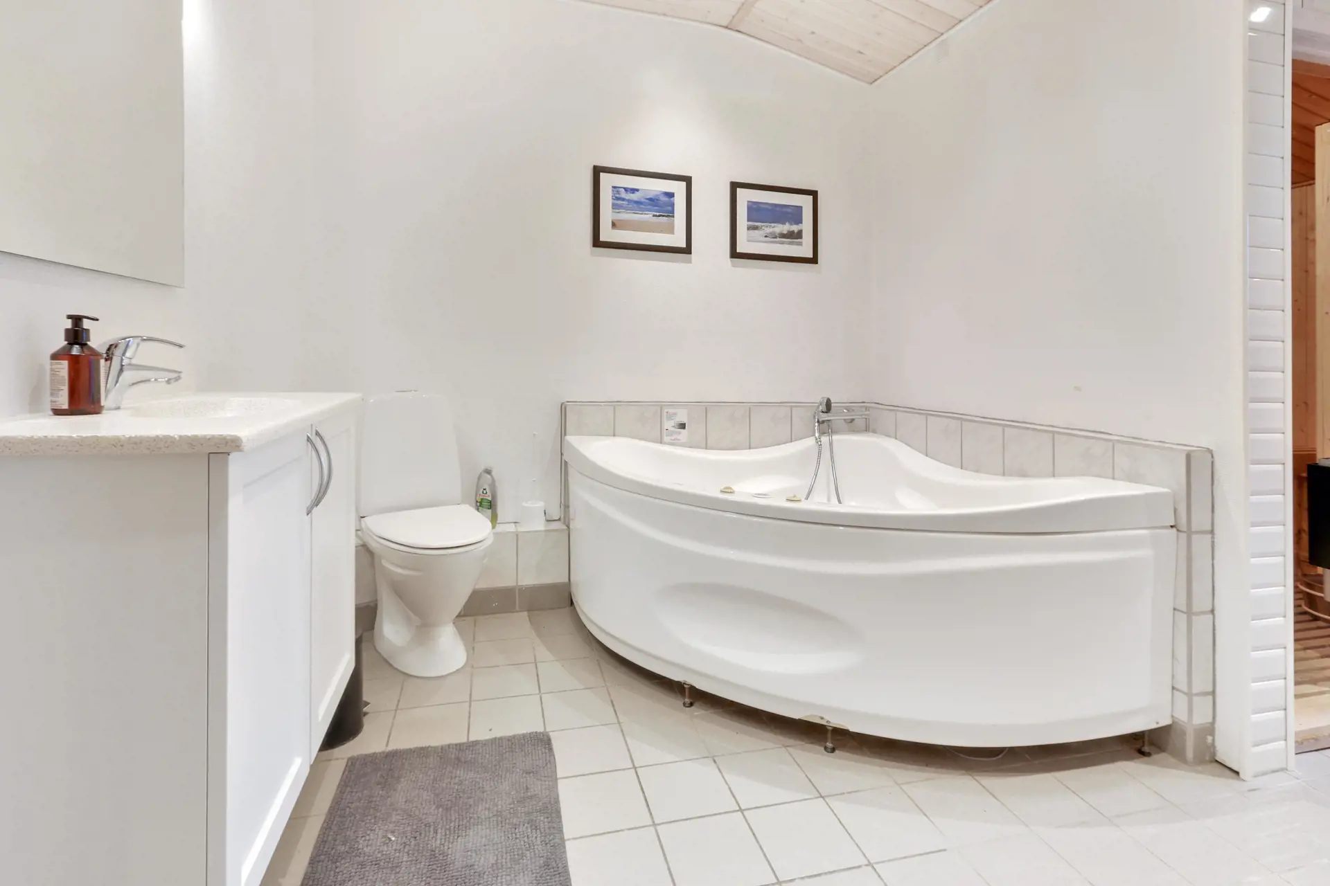 Das Ferienhaus bietet zwei Badezimmer, von denen eines als exklusive Wellness-Oase mit Whirlpool und Sauna eingerichtet ist – ideal nach einem langen Tag am Strand oder in der frischen Nordseeluft. Zudem stehen praktische Wascheinrichtungen im Haus zur Verfügung.