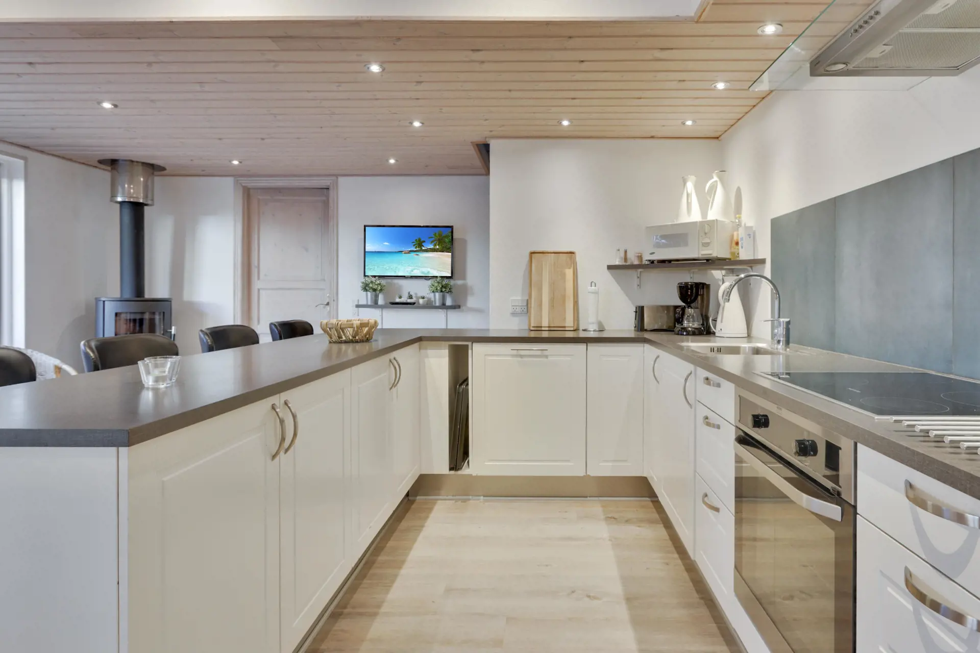 Das Haus wurde laufend modernisiert und präsentiert sich hell, modern und einladend. Mit vier komfortablen Schlafzimmern stehen ausreichend Schlafplätze zur Verfügung, und die großzügigen Wohnbereiche bieten viel Raum für gemütliches Beisammensein. Die offene Küche mit Essbereich bildet den natürlichen Mittelpunkt des Hauses, wo Kaminofen und Wärmepumpe zu jeder Jahreszeit für eine angenehme Atmosphäre sorgen. Als besonderes Highlight verfügt das Haus über einen integrierten Wintergarten in Ganzjahresqualität mit offener Decke bis zum First und herrlichem Blick auf die Dünen.