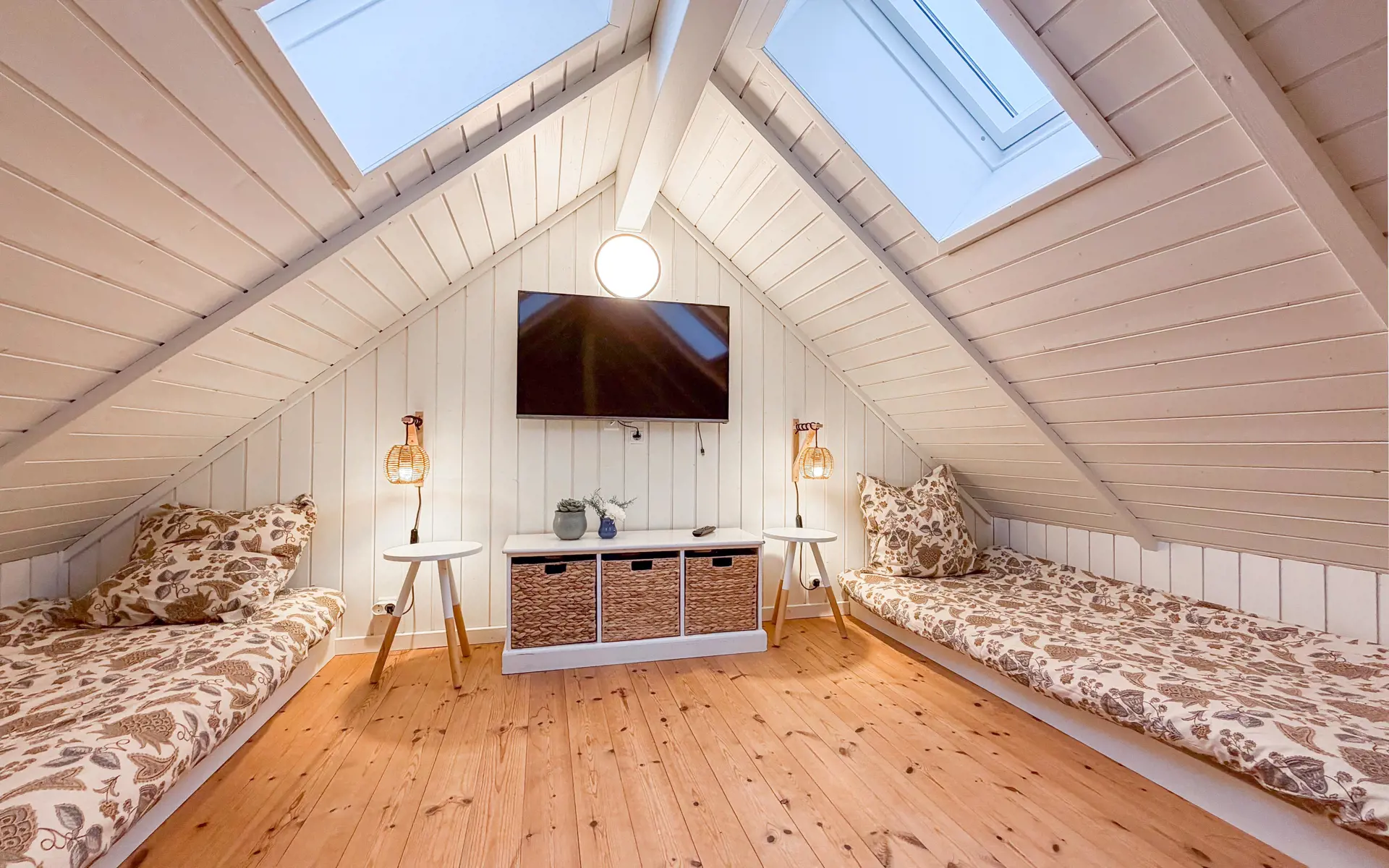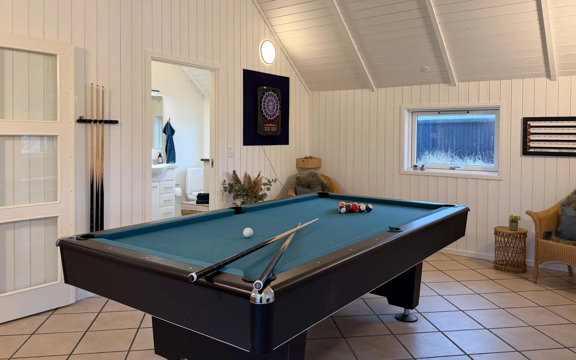 Draußen können Sie die Urlaubstage auf der geschlossener Terrasse mit Gartenmöbeln und Grill genießen und nach langen Strandspaziergängen die Abendsonne auskosten. Der Außenwhirlpool lädt zu entspannenden Momenten unter freiem Himmel ein. Für die kleinsten Gäste gibt es eine Schaukel und viel Platz zum Spielen auf dem großen Naturgrundstück. Die Umgebung von Vrist bietet zahlreiche Freizeitmöglichkeiten – versuchen Sie sich im Windsurfen, spielen Sie eine Runde Minigolf oder genießen Sie die Ruhe beim Angeln. Einkaufsmöglichkeiten befinden sich etwa 600 Meter vom Haus entfernt, das nächste Restaurant liegt rund 3 km entfernt. Ein Ausflug in den charmanten Hafenort Thyborøn mit dem Kystcentret und dem JyllandsAkvariet lohnt sich ebenfalls. Auch der Nationalpark Thy mit seinen beeindruckenden Dünenlandschaften und seiner reichen Tierwelt ist gut erreichbar.