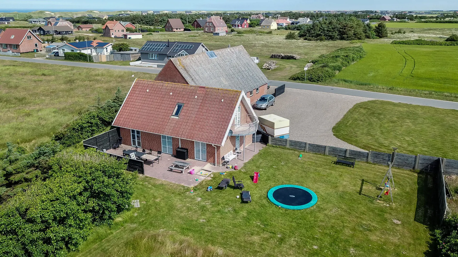 Das Ferienhaus liegt auf einem 4.000 m2 großen gepflegten Grundstück. Es gibt einen Ballplatz mit 2 Fußballtoren, eine Lagerfeuerstelle, einen Spielplatz mit Schaukeln, einen Sandkasten und ein Trampolin. 2 große Sonnenterrassen mit Gartenmöbeln, Sonnenliegen. Grillen ist natürlich möglich. Ca. 250 m vom Haus entfernt befindet sich der saisonale Minimarkt, der frisches Frühstück anbietet und wo auch die täglichen Einkäufe erledigt werden können. Machen Sie einen kurzen Spaziergang in der Umgebung, über die hohen Dünen und gleich danach offenbart sich die Nordsee. Die Nordsee bietet jeden Tag ein neues malerisches Erlebnis, das zu einem frischen Spaziergang oder Lauf einlädt. In kurzer Fahrt erreichen Sie sowohl die aktive Handelsstadt in Lemvig mit mehreren Fachgeschäften als auch das einzigartige Fischerdorf Thyborøn, das neben dem aktiven Fischerhafen auch einen Strand und mehrere Aktivitäten bietet, die alle einen Besuch wert sind.