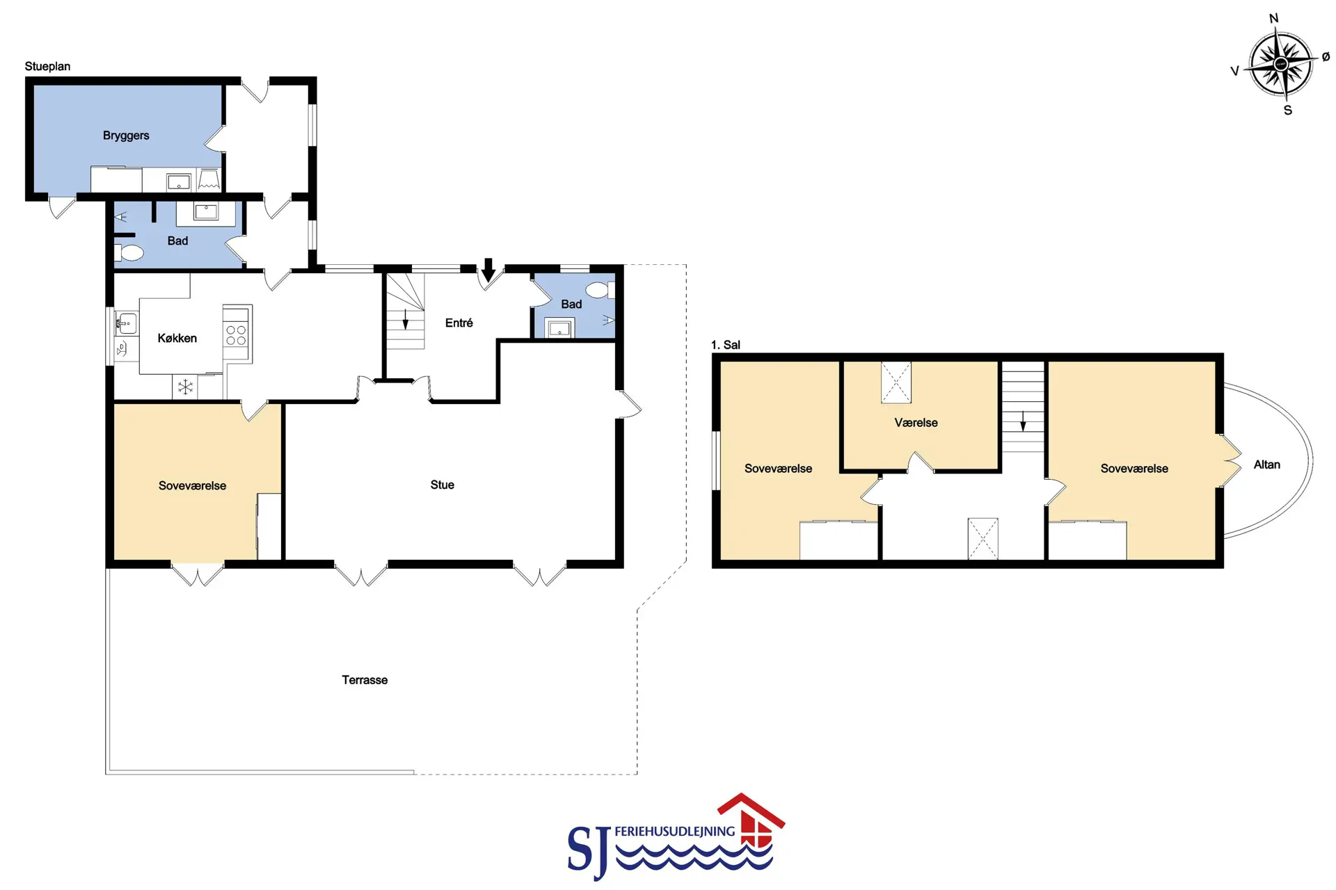 Das Haus ist 180 m2 groß, auf 2 Etagen verteilt. Vom großen Hof beim Haus besteht die Möglichkeit über 2 separate Eingänge in das Haus zu kommen. Gemütliche Küche mit Herd, Kochinsel mit Cerankochfeld, Dunstabzugshaube und Einbaubackofen. Viel Geschirr/Besteck, Spülmaschine, Kühlschrank, Mikrowelle und Tisch mit Sitzgelegenheiten. Vom Wohnzimmer aus gelangt man über eine französische Glastür in ein schönes Wohnzimmer mit Esstisch mit Sitzgelegenheiten für alle, Ledermöbel, Radio, Smart-TV mit dänischen und deutschen Programmen und der Möglichkeit zum Streamen von TV/Radio/ Apps. Die im Erdgeschoss installierte Wärmepumpe sorgt für einen minimalen Heizverbrauch. Im Erdgeschoss befindet sich 1 Schlafzimmer (1DS). Es gibt 2 Badezimmer mit Toilette, Waschbecken, Dusche und Fußbodenheizung. Hauswirtschaftsraum mit Waschmaschine, Trockner und Gefrierschrank. Kinderbett und Hochstuhl für die Kleinen. In der Küche und im Wohnzimmer gibt es neue geschliffene Holzböden. Nichtraucher-Haus. 2 Haustiere ist erlaubt.
