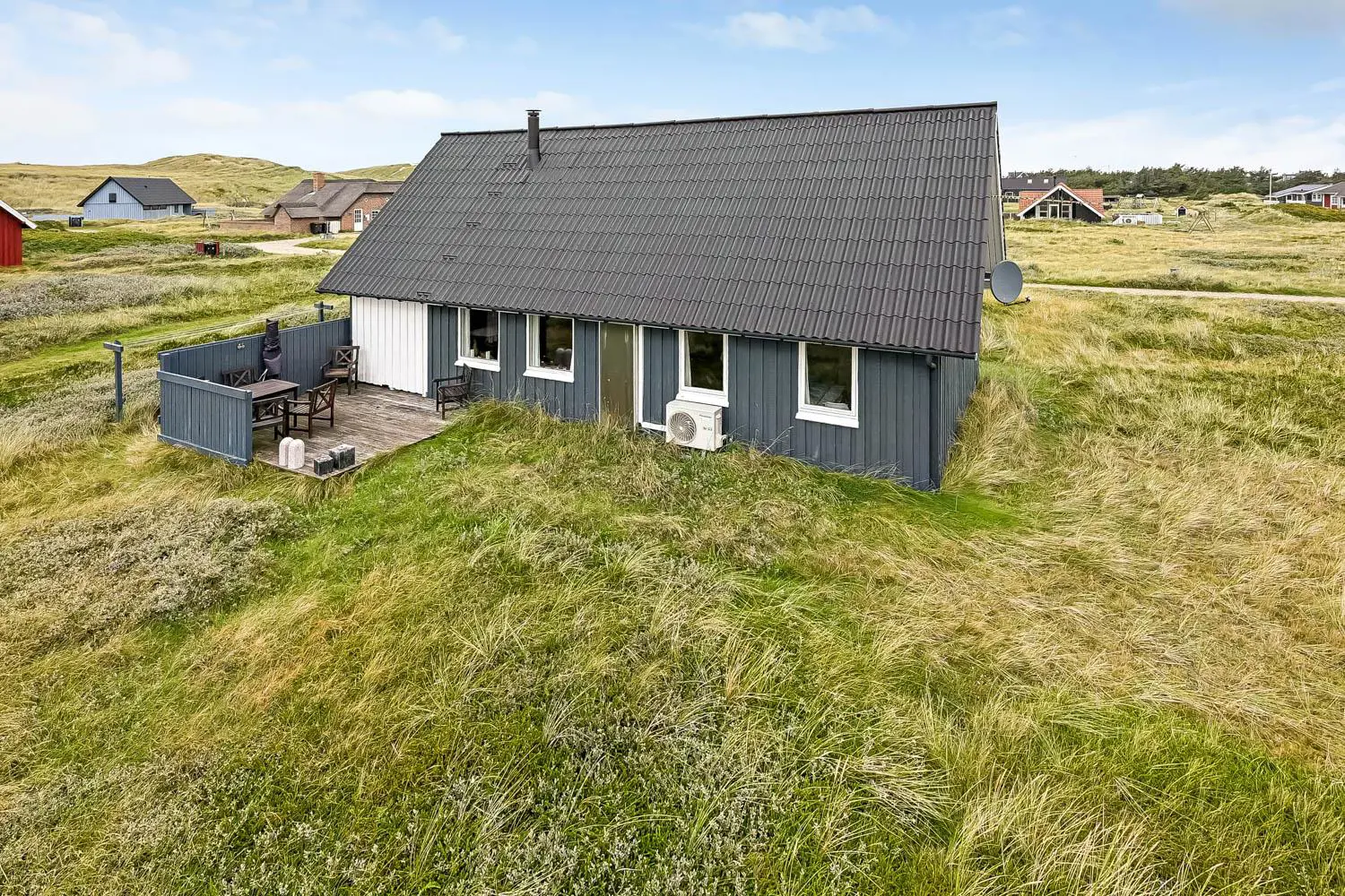 80 m² grosses Ferienhaus mit 3 Schlafräumen. Im Parterre gibt es 1 Schlafraum mit 2B und im 1. Stock gibt es 2 Schlafräume mit 1DB + 2B. Kombinierter Wohnraum mit der Küchenecke mit Blick auf die hohen Dünen. Schöne Küchenecke mit z.B. Geschirrspüler, Herd mit Cerankochfeld, Abzugshaube und allem an Geschirr und Kochgeschirr und Kühlschrank mit Gefrierfach. Schöner Wohnraum mit Ledermöbeln, Bluetooth Lautsprechern und steiler Treppe zum 1. Stock. Entspannen Sie sich vor den Kaminofen der zusammen mit die Wärmepumpe für niedrige Nebenkosen sorgt. TV mit dänischen und deutschen Programmen und der Möglichkeit TV/Radio/Apps via Chromecast zu streamen. Der Esstisch ist praktisch an der Küchenecke plaziert. Waschmaschine und Trockner. Kinderbett und Kinderstuhl für die kleinen Gäste. Praktische Böden im ganzen Haus. Wenn Sie ein Elektroauto oder einen Plug-in-Hybrid haben, verfügt das Haus über eine Ladesteckdose. Nichtraucher-Haus. Haustiere sind nicht erlaubt.