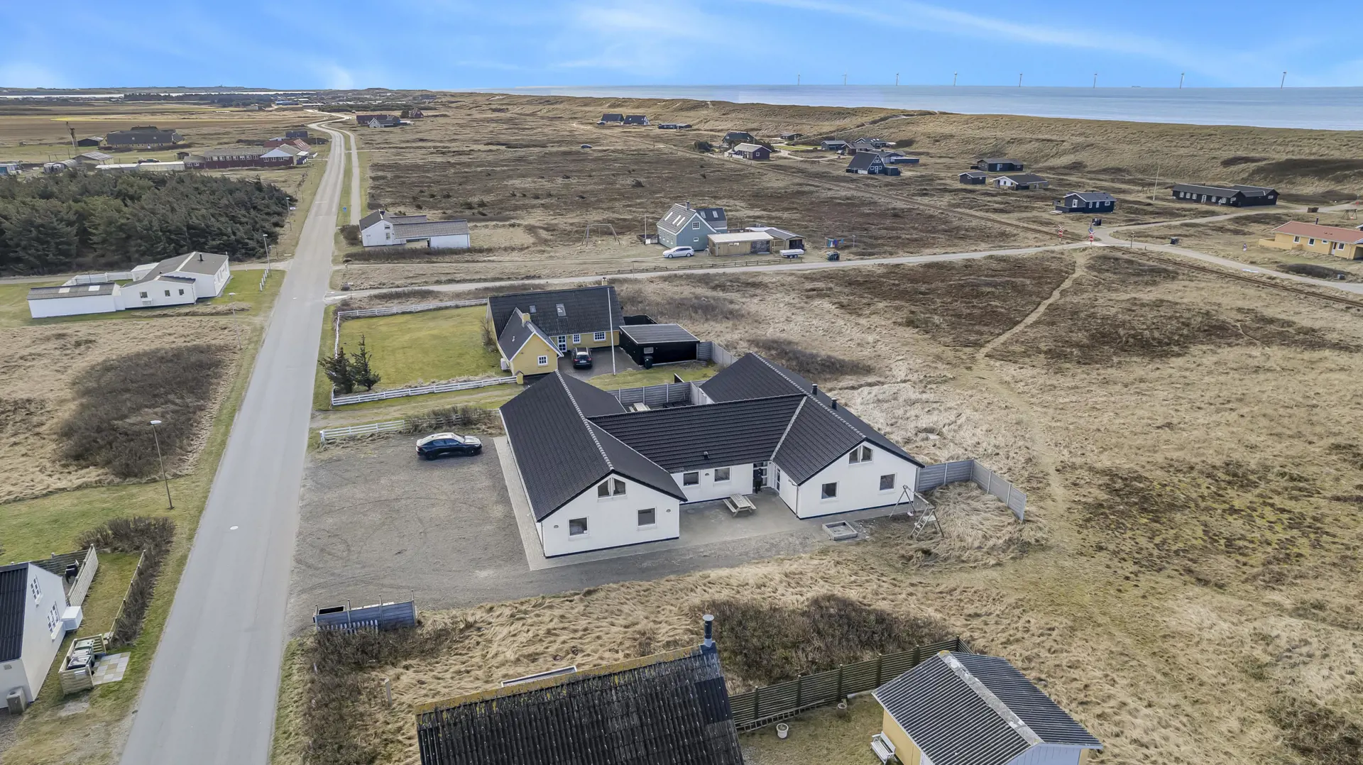 Das Haus ist von einer 215 m² großen Terrasse umgeben, wo Sie immer ein geschütztes Plätzchen an den sonnigen Urlaubstagen finden. Hier gibt es Gartenmöbel, eine Außenküche mit Fischreinigungsplatz und Grill. Für die Kinder stehen Sandkasten und Schaukeln zur Verfügung. Dieses fantastische Wellness-Luxus-Haus liegt auf einem schönen 5.000 m² Naturgrundstück und nur 300 m von der Nordsee entfernt. Das Grundstück befindet sich zentral im Ferienort Vrist, nur 500 m zum Einkauf und trotzdem am Naturschutzgebiet.