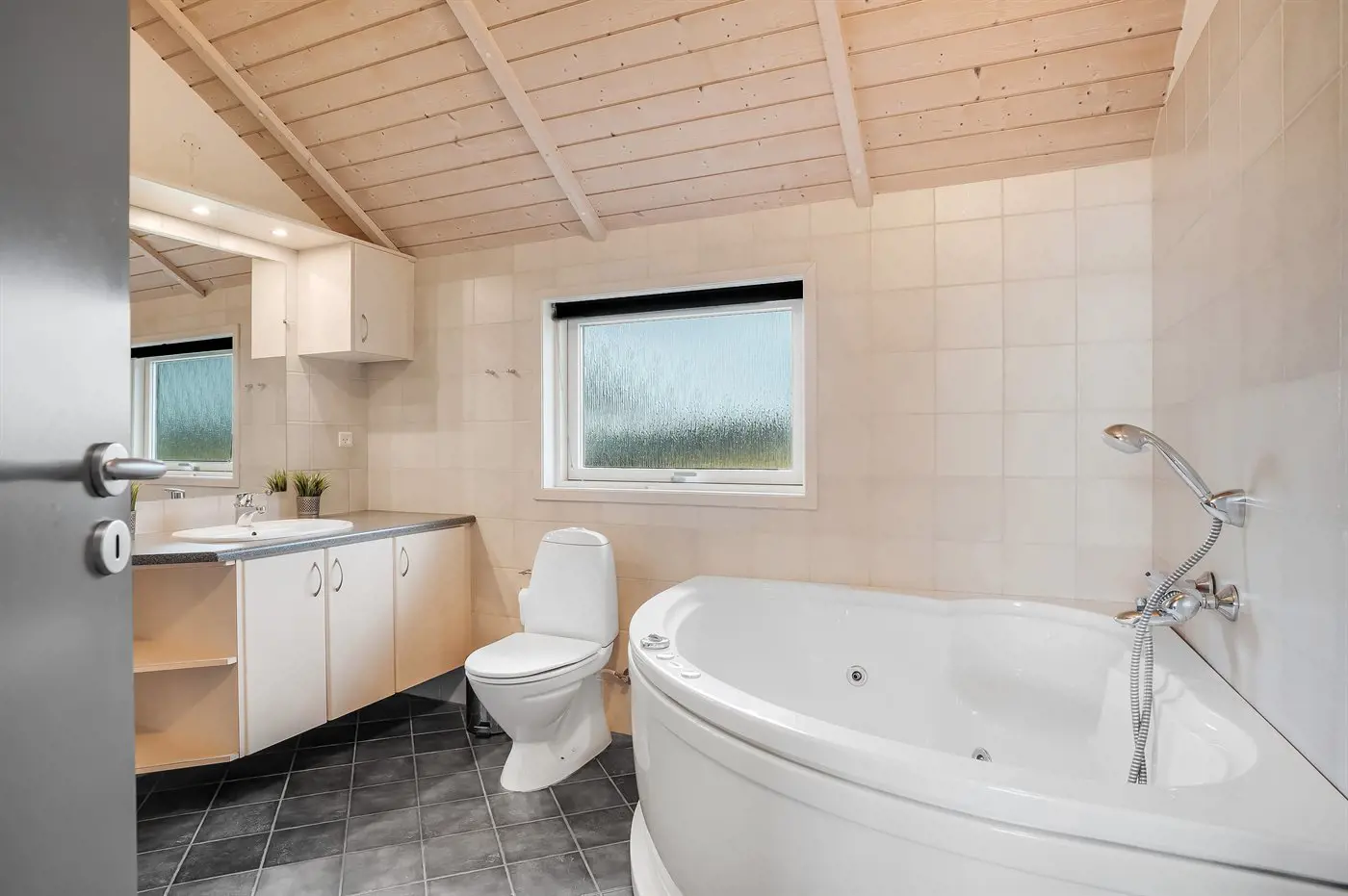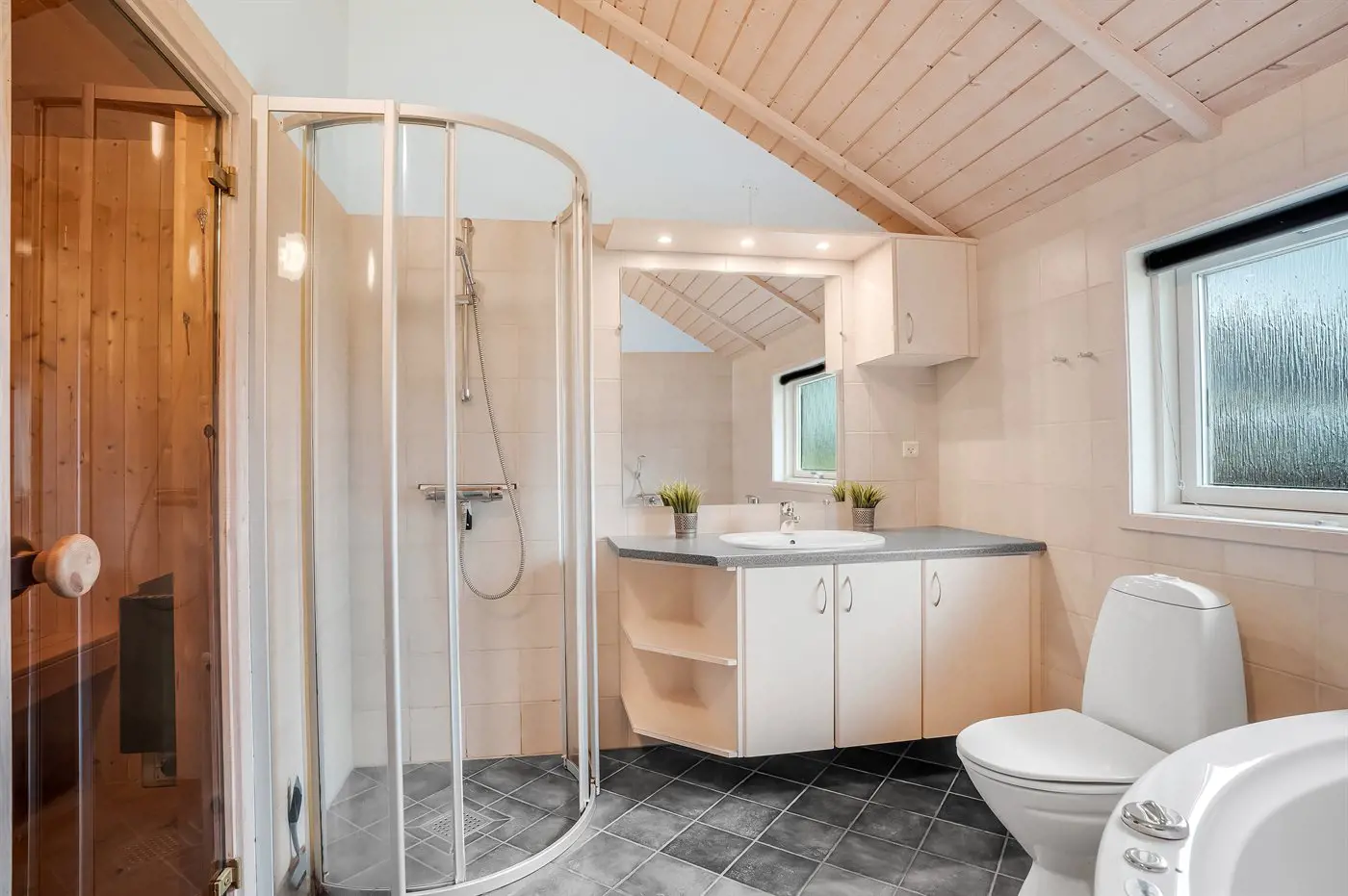 Es gibt 1 Badezimmer mit Duschnische und 2 Toiletten, davon 1 Gästetoilette. Fußbodenheizung in 1 Badezimmer. Fußbodenheizung in der Gästetoilette. Es steht eine Sauna zur Verfügung in der Sie sich so richtig entspannen können.