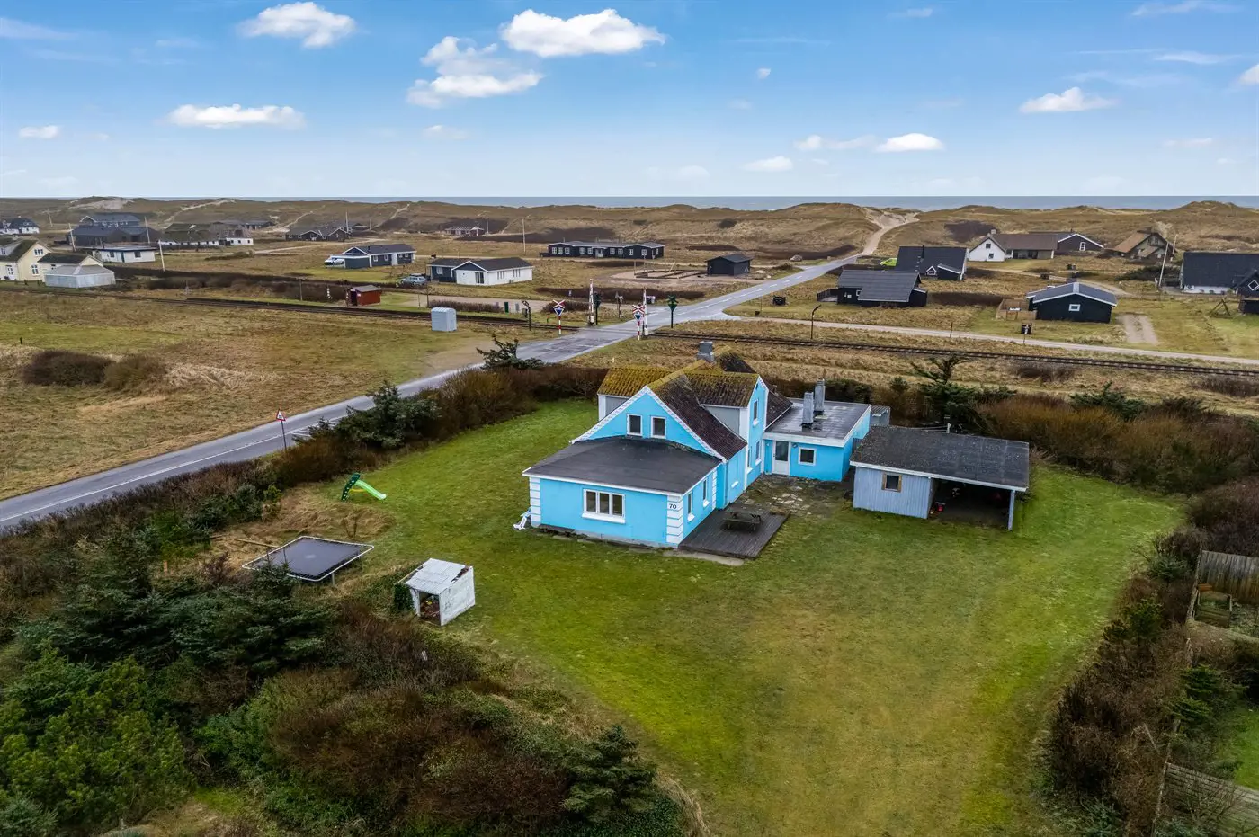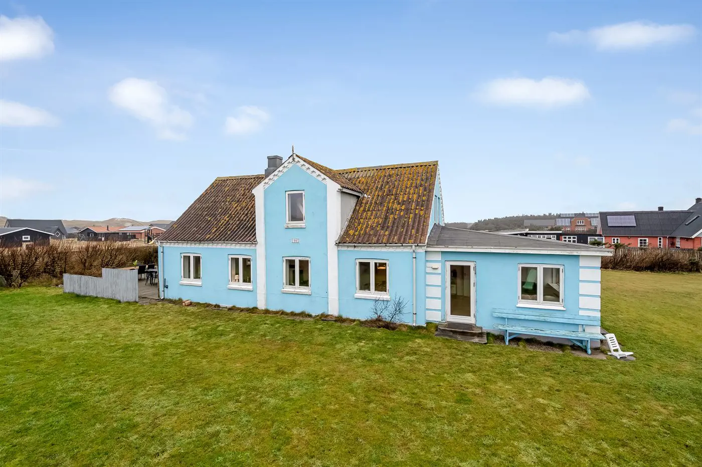 Die Ferienunterkunft liegt auf einem 2500 m² großen Dünengrundstück. Die Entfernung zum Meer beträgt 200 m. Die nächste Einkaufsmöglichkeit liegt 300 m entfernt. Es steht ein offenes Terrassenareal zur Verfügung. Es steht ein Carport zur Verfügung. Es ist ein Ladestecker für Elektroautos installiert. Parkplatz auf dem Grundstück.