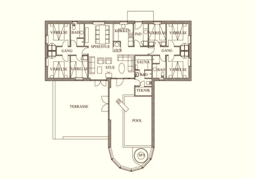 Nur 200 m von der Nordseeküste entfernt finden Sie dieses reetgedeckte Poolhaus mit einer Größe von 200 m². Das Haus steht ca. 12 km von Thyborøn entfernt, wo es verschiedene Erlebnisse für die ganze Familie gibt, z.B. das Aquarium JyllandsAkvariet oder das Seekriegsmuseum.