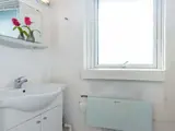 Ein Bad und ein Gäste-WC sowie 4 Schlafzimmer im Haus, drei davon mit je einem Doppelbett, das vierte mit zwei Etagenbetten ausgestattet. Praktische Helfer wie Spül- und Waschmaschine sowie Wäschetrockner stehen im Haus bereit.