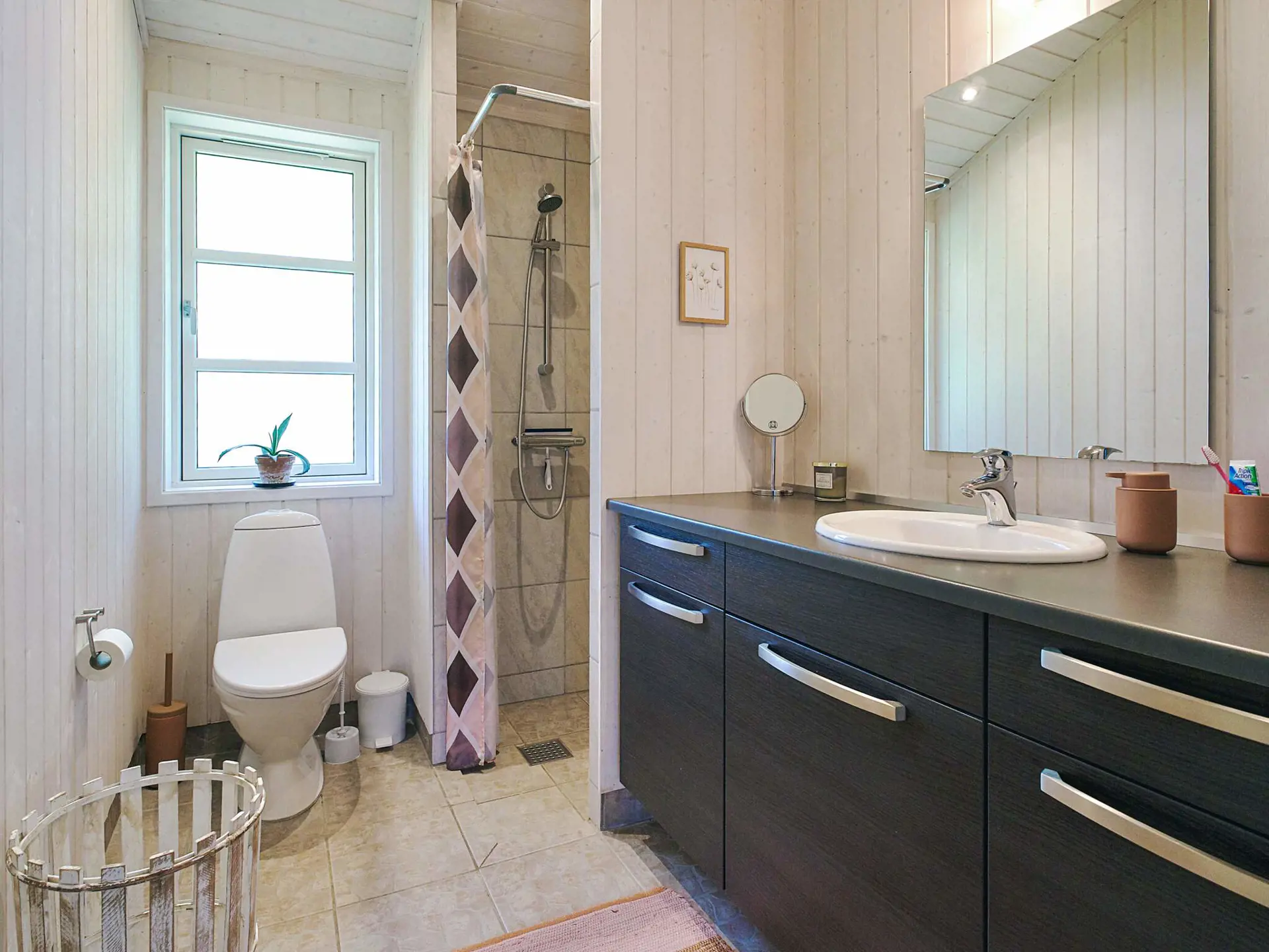 Das 108 m² große Ferienhaus besteht u.a. aus einem Flur mit eingebauter Waschmaschine sowie aus 3 großen, schönen Schlafzimmern, alle mit Doppelbett. Ein Schlafzimmer mit privatem Hauptbad und Fußbodenheizung.