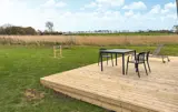Gehen Sie hinaus und spüren Sie die Weite der Landschaft. Auf der umlaufenden Holzterrasse lässt sich die Sonne von früh bis spät genießen. Frühstücken Sie an der frischen Luft, entspannen Sie auf einer Liege oder beobachten Sie, wie sich das Licht über den Feldern verändert. Der großzügige Garten mit Rasen bietet viel Platz zum Spielen oder einfach zum Barfußlaufen im Gras.