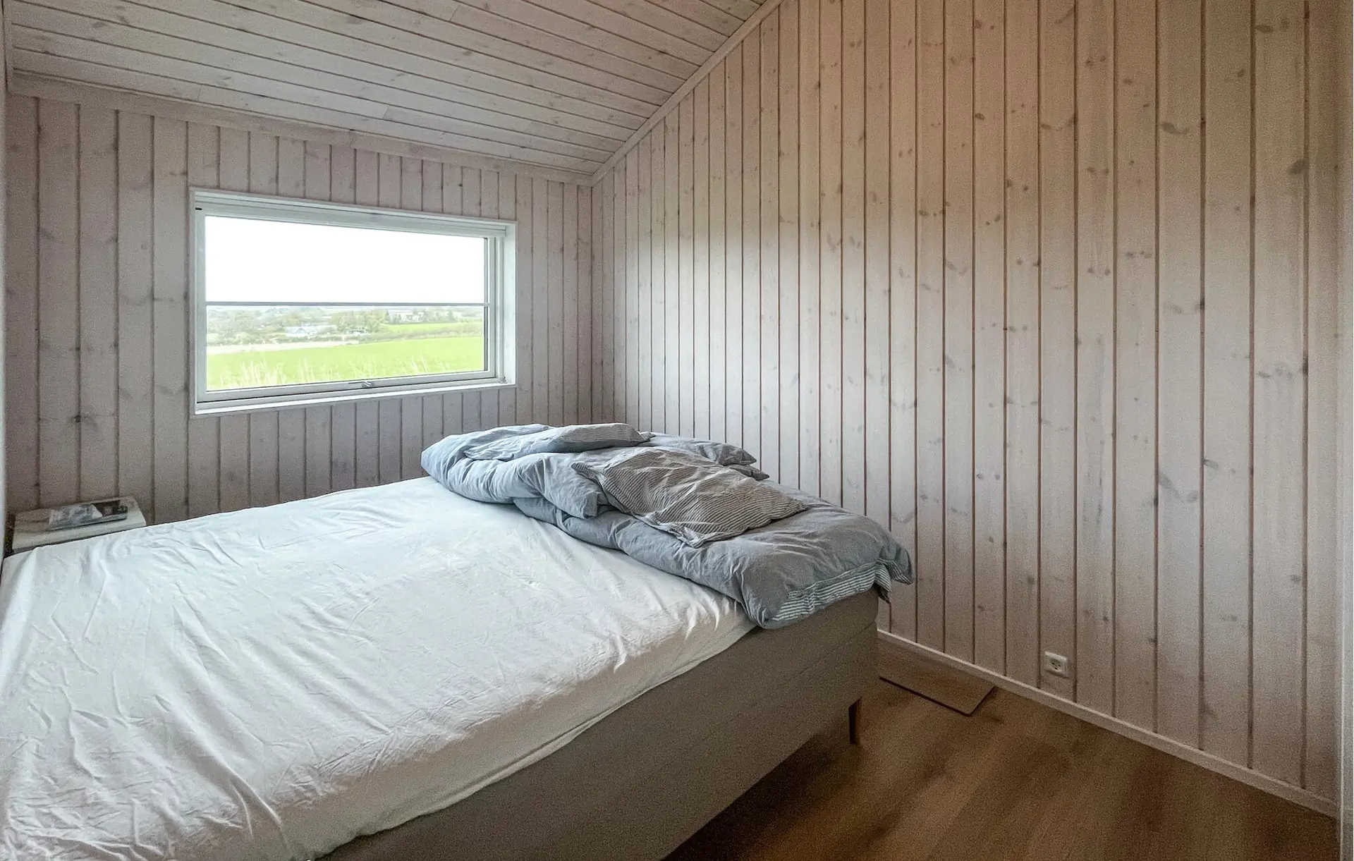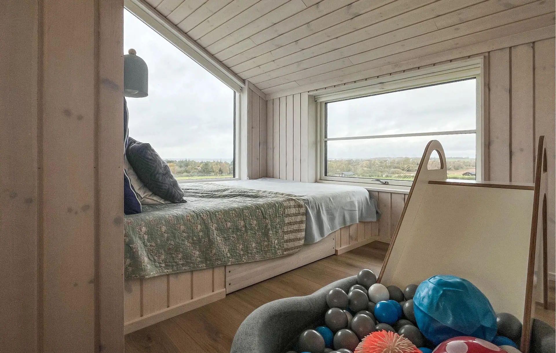 Genießen Sie Ihren Urlaub in diesem hellen und stilvoll eingerichteten Ferienhaus, das moderne Architektur mit gemütlicher Atmosphäre verbindet. Der hohe Giebel, die großen Panoramafenster und das helle Holzinterieur im Wohnraum schaffen eine freundliche, luftige Atmosphäre. Machen Sie es sich hier gemütlich, lesen Sie ein Buch mit Blick auf die weiten Felder oder genießen Sie gemeinsame Mahlzeiten am großen Esstisch. Die moderne Küche mit Bartheke und hochwertigen Geräten bietet alles, was Sie für entspannte Kochabende benötigen.