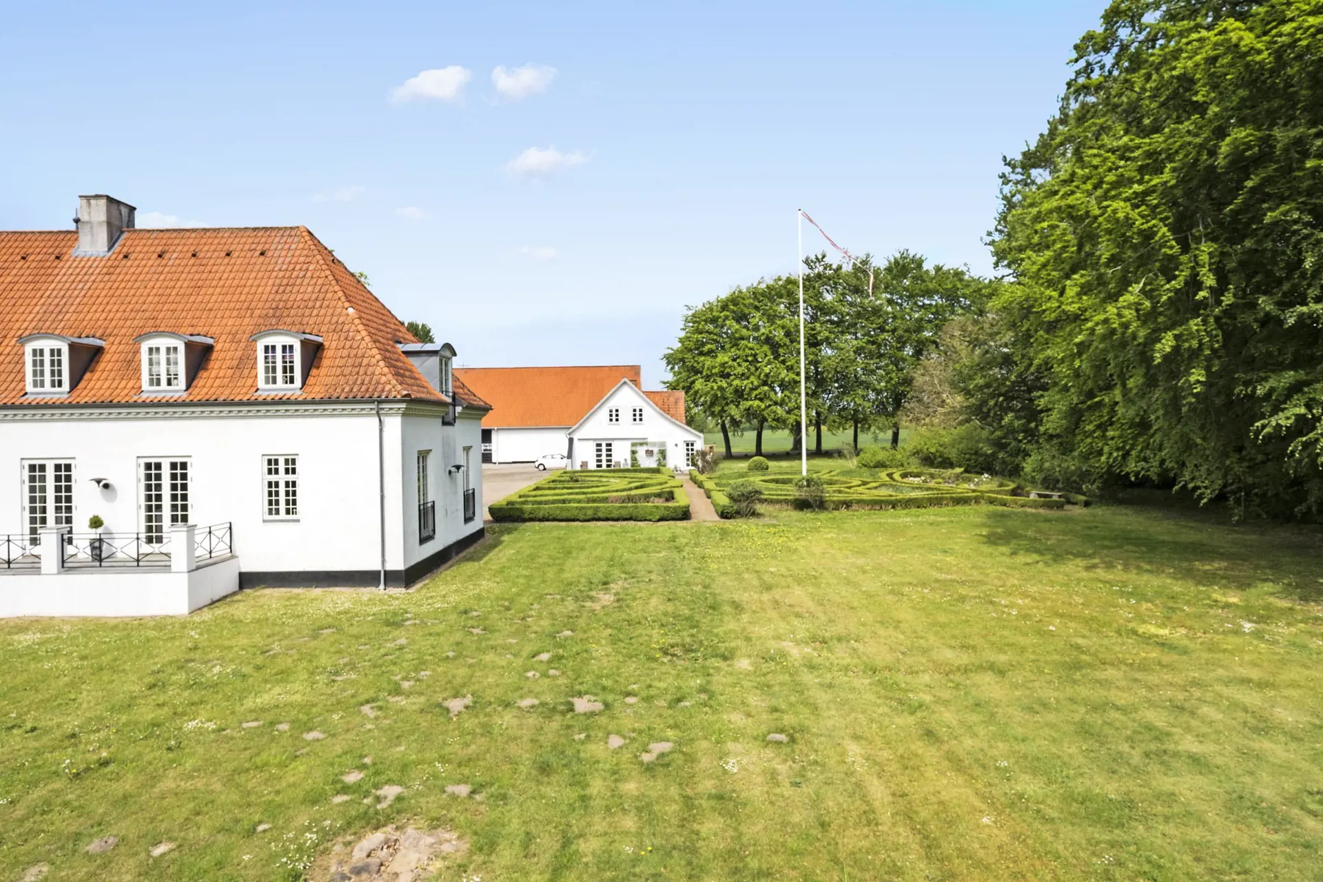 Das Anwesen (ursprünglich Flinterupgård genannt) entstand 1790 aus vier Bauernhöfen, die zum Gut unter dem Namen Stamhuset Lerchenborg gehörten. Das Hauptgebäude wurde 2003 erbaut bzw. umfassend renoviert oder umgebaut – es präsentiert sich modern, aber im Stil eines Herrenhauses, inklusive eines Turms zum Innenhof. Bis vor Kurzem wurden größere Flächen für den ökologischen Landbau genutzt, und das Land gehört zum Anwesen.