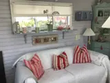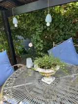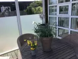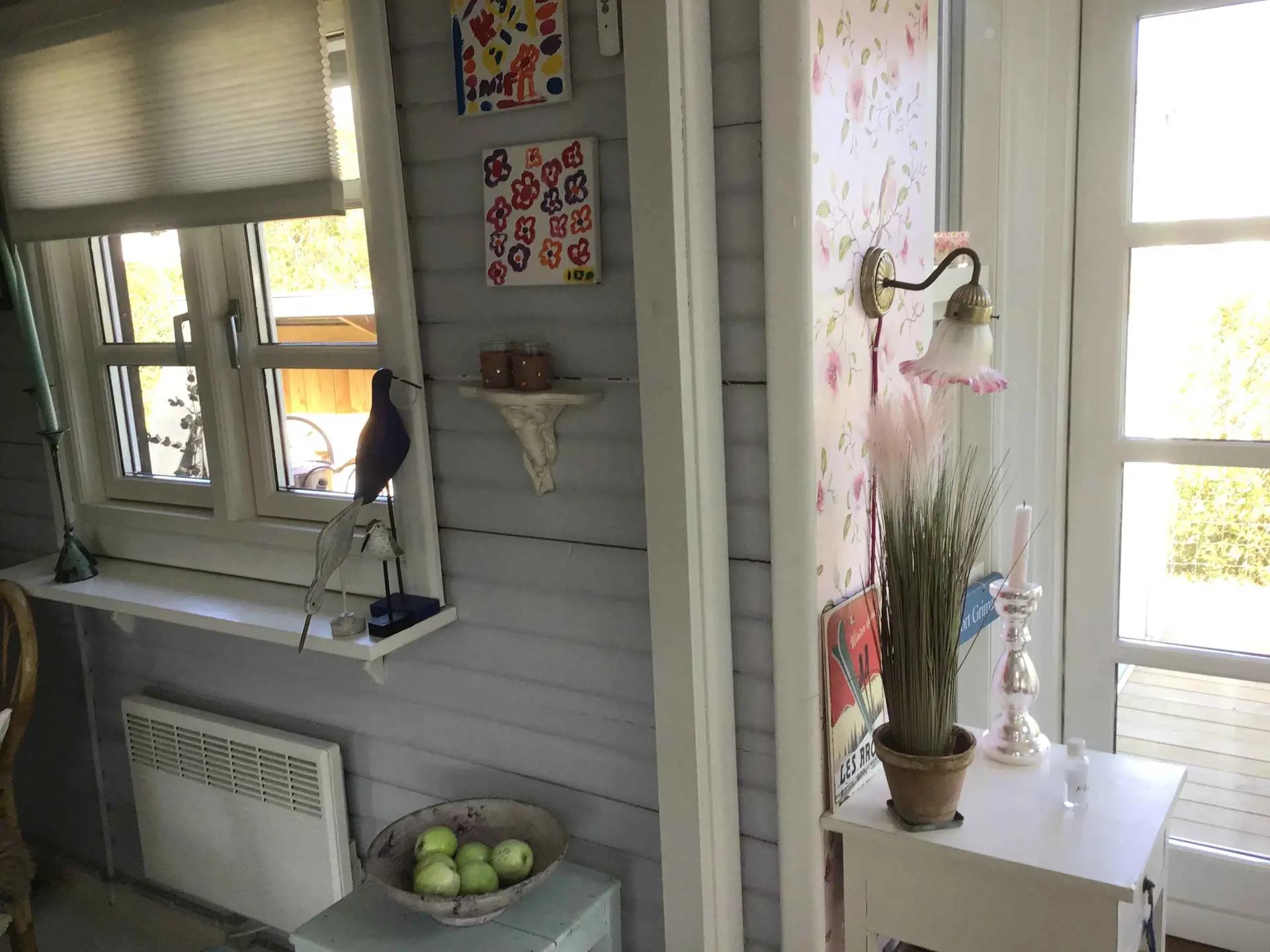 Das Haus verfügt über alle notwendigen Einrichtungen für einen unbeschwerten Aufenthalt außerhalb der Hauptsaison. Vom Wohnzimmer aus gelangt man direkt auf eine große Holzterrasse mit Markise und überdachter Pergola, ideal für milde Tage oder eine Tasse Kaffee an der frischen Luft.
