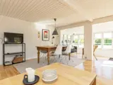 Ferienhaus auf der kleinen Insel Enø in der Nähe von Karrebæksminde und Fjord. Im Haus stehen Küche und Wohnzimmer sowie der integrierte Wintergarten in einer offenen Verbindung. Es gibt ein Schlafzimmer mit Doppelbett und zwei Zimmer mit je zwei Einzelbetten. Badezimmer mit Toilette und Dusche. Im Hauswirtschaftsraum stehen Waschmaschine und Wäschetrockner bereit.
