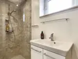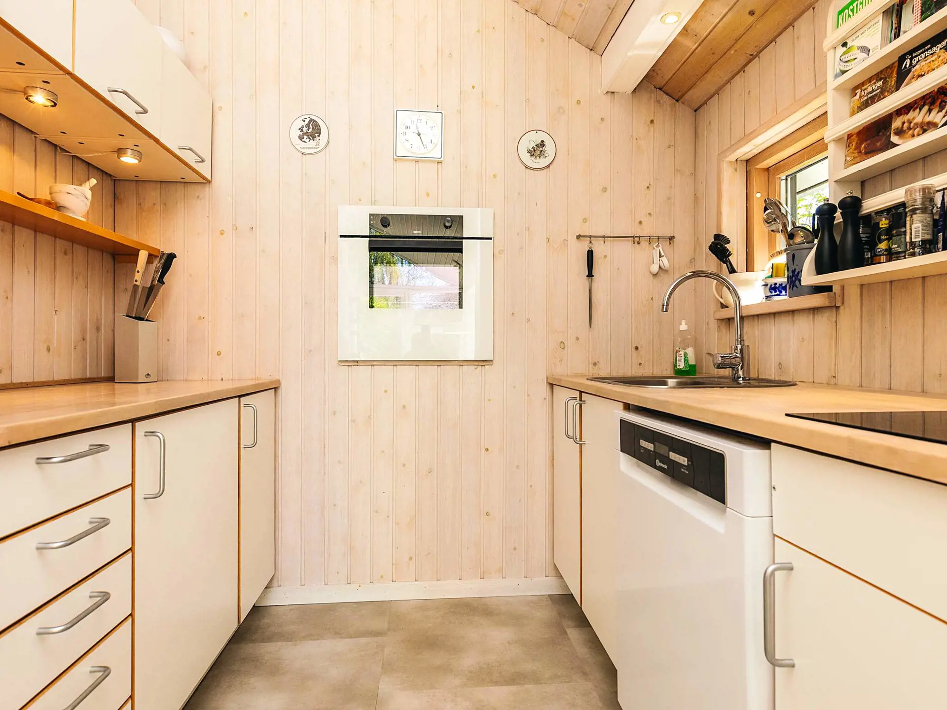 Auf der kleinen Insel Enø bei Karrebæksminde liegt, auf einem großen und ungestörten Grundstück in einem ruhigen Ferienhausgebiet, dieses Ferienhaus. Es bietet eine Küche in offener Verbindung zur verglasten Veranda, von der man Zugang zur Terrasse hat. Das Wohnzimmer ist mit bequemem Mobiliar ausgestattet und hat eine Treppe zum ersten Stock. Schönes Badezimmer mit Dusche und Fußbodenheizung im Haus. Zwei Schlafzimmer mit Doppelbett und ein 3. Schlafzimmer mit Doppelliege. In Karrebæksminde finden Sie Restaurants und Einkaufsmöglichkeiten. Guter, kinderfreundlicher Badestrand in der Nähe.