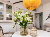 Das Ferienhaus ist mit einer offenen Küche und einem Wohnzimmer ausgestattet. Vom Wohnzimmer aus hat man direkten Zugang zu einem Wintergarten und von diesem aus weiter zur leicht windgeschützten Terrasse. Von dieser Terrasse aus können Sie das Rauschen des Meeres hören und so in die richtige Urlaubsstimmung kommen.