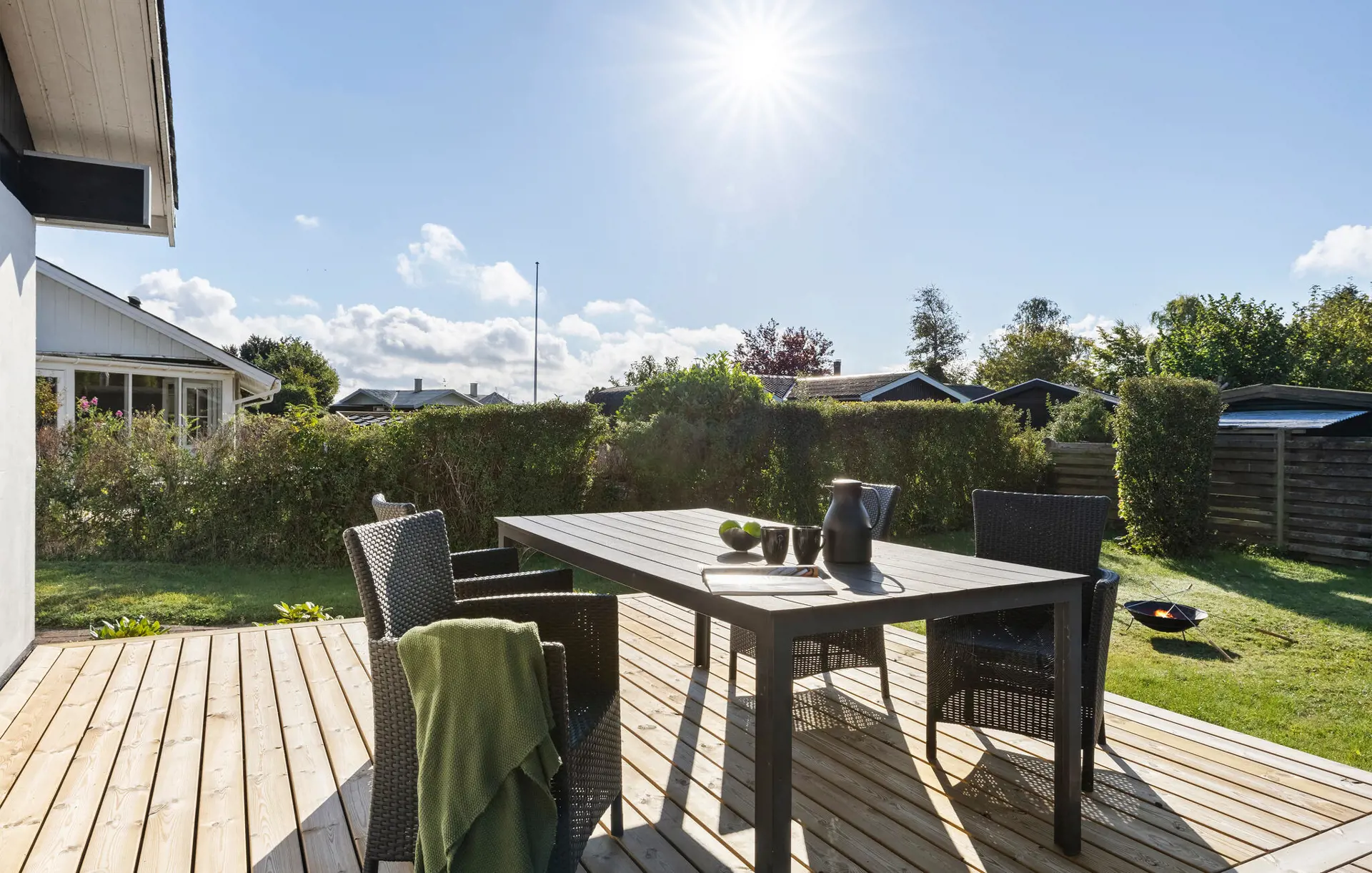 Auf der großzügigen Holzterrasse kommen alle auf ihre Kosten, und der weitläufige Rasen bietet viel Platz zum Spielen und Herumtollen. Wenn der Tag sich dem Ende neigt, wird die Feuerstelle zum Treffpunkt für die ganze Familie – mit Stockbrot und gemütlichen Gesprächen unter dem Abendhimmel.