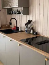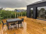 Das Ferienhaus ist gut eingerichtet und auf Gemütlichkeit ausgelegt. Die einladende Küche ist offen mit dem Wohnzimmer verbunden, und eine Schiebetür führt direkt auf die große, nach Süden ausgerichtete Terrasse, auf der Sie den ganzen Tag die Sonne genießen können. Die Terrasse hat eine kleine Stufe.