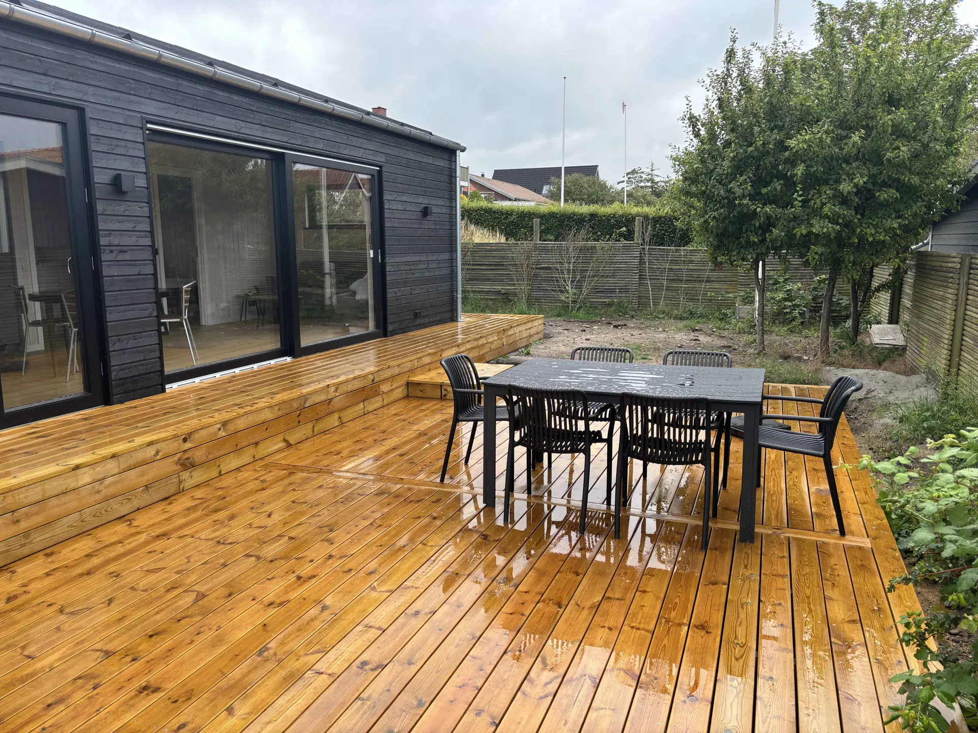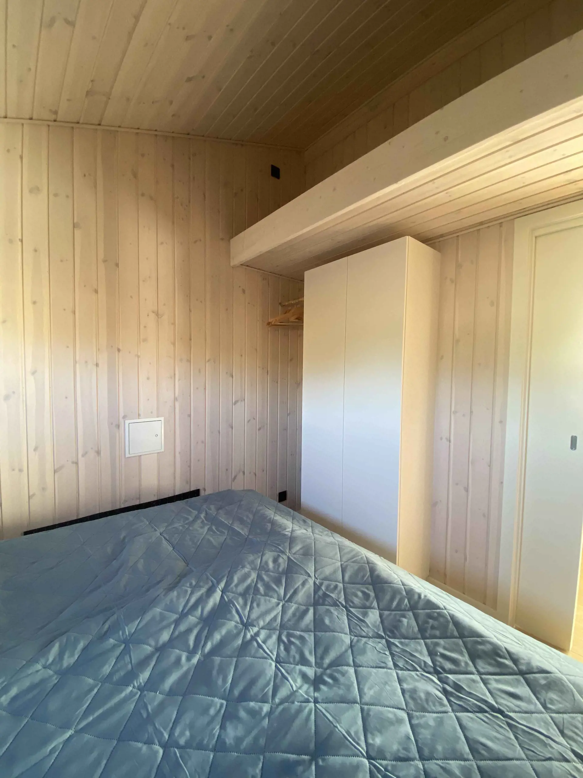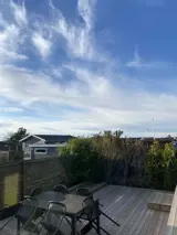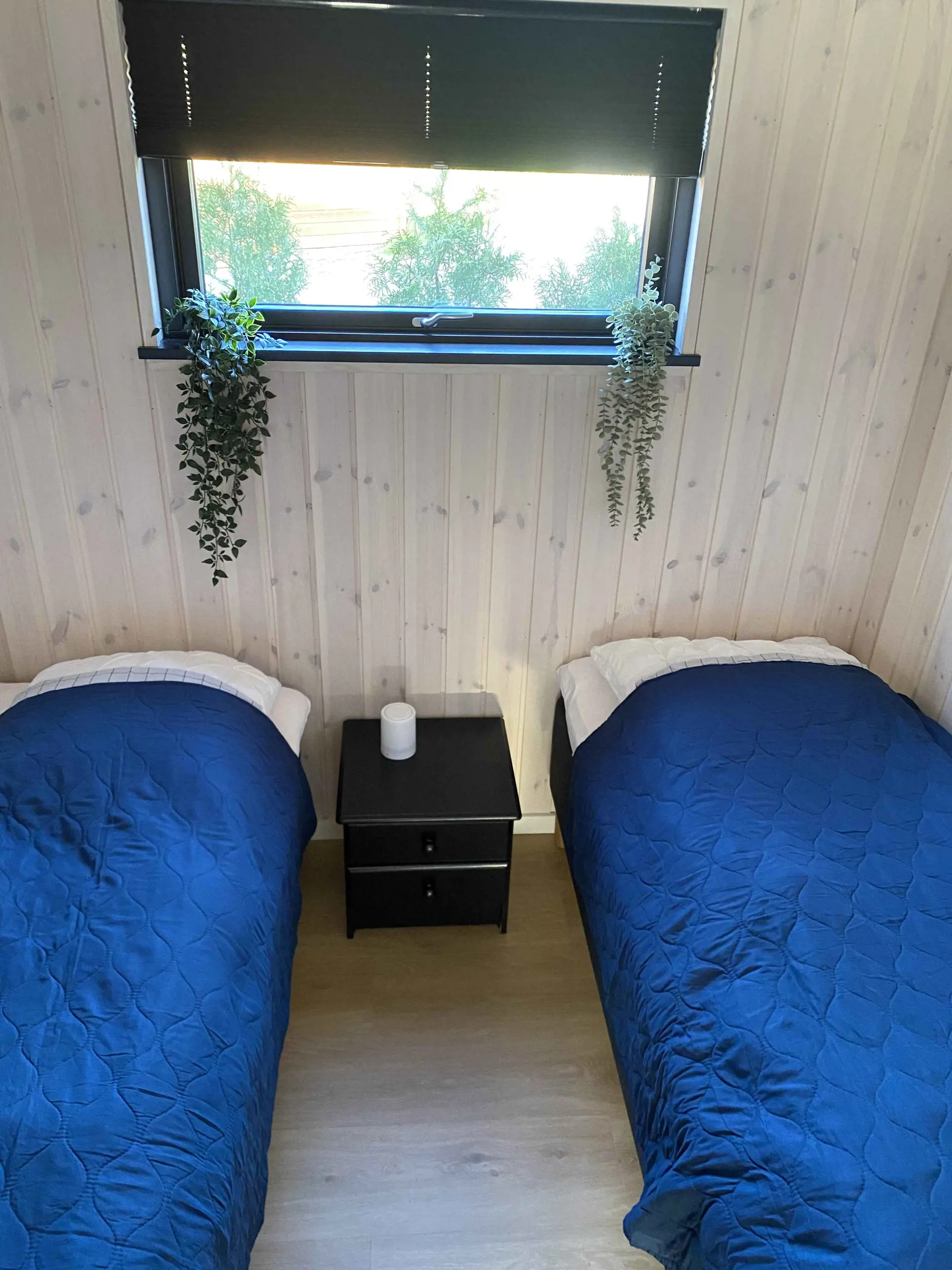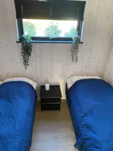 Es gibt zwei gemütliche Schlafzimmer: eines mit Doppelbett und eines mit zwei Einzelbetten, alle mit hochwertigen Matratzen. Das moderne Badezimmer verfügt über Dusche, Toilette und Waschmaschine. Nach dem Strand können Sie den Sand in der Außendusche hinter dem Haus abspülen. Der kleine Rasen bietet Platz zum Spielen und Entspannen.