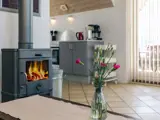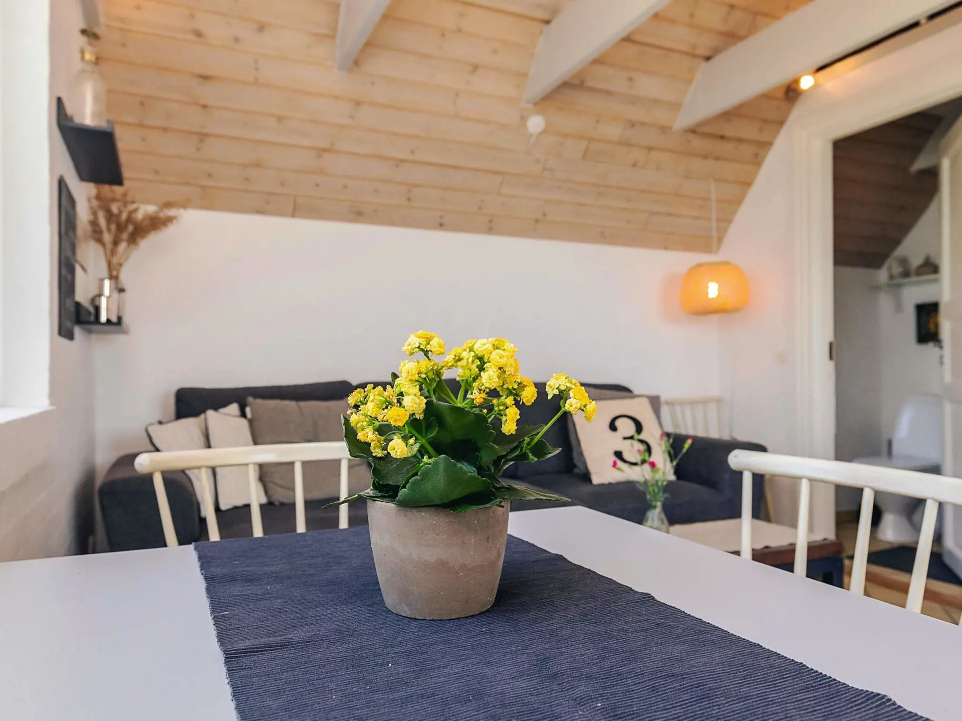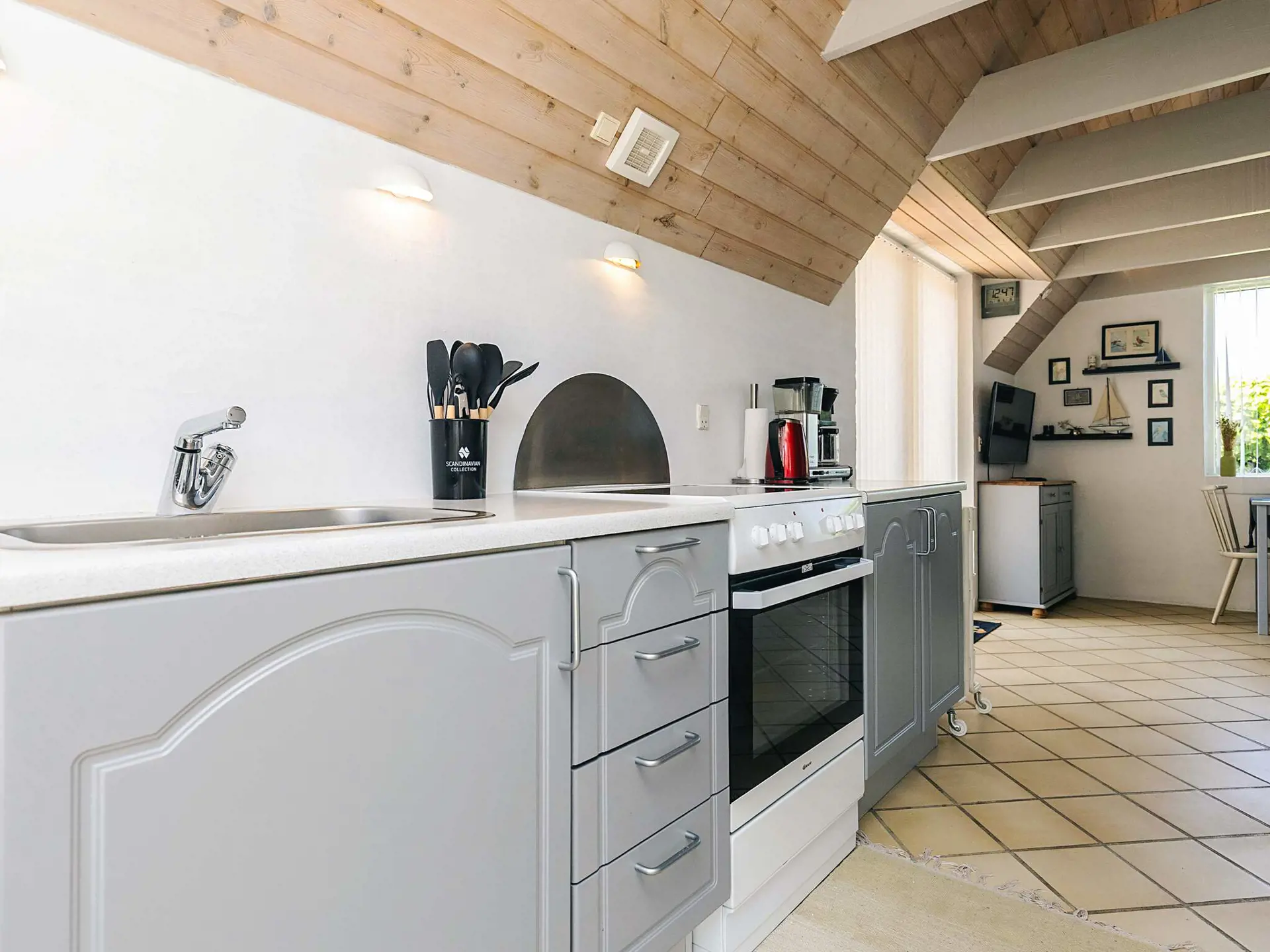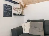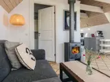 Innen offener Küchen-/Wohnbereich. Hier kann im Wohnbereich die doppelte Schlafcouch genutzt werden. Im Anschluss daran offener Schlafbereich ohne Zimmertür. Max. 4 Personen im Haus erlaubt. Badezimmer mit Dusche/WC. Zudem Holzofen und angenehme Fußbodenheizung im Haus. Freies WLAN und Chromecast zum Streamen im TV.
