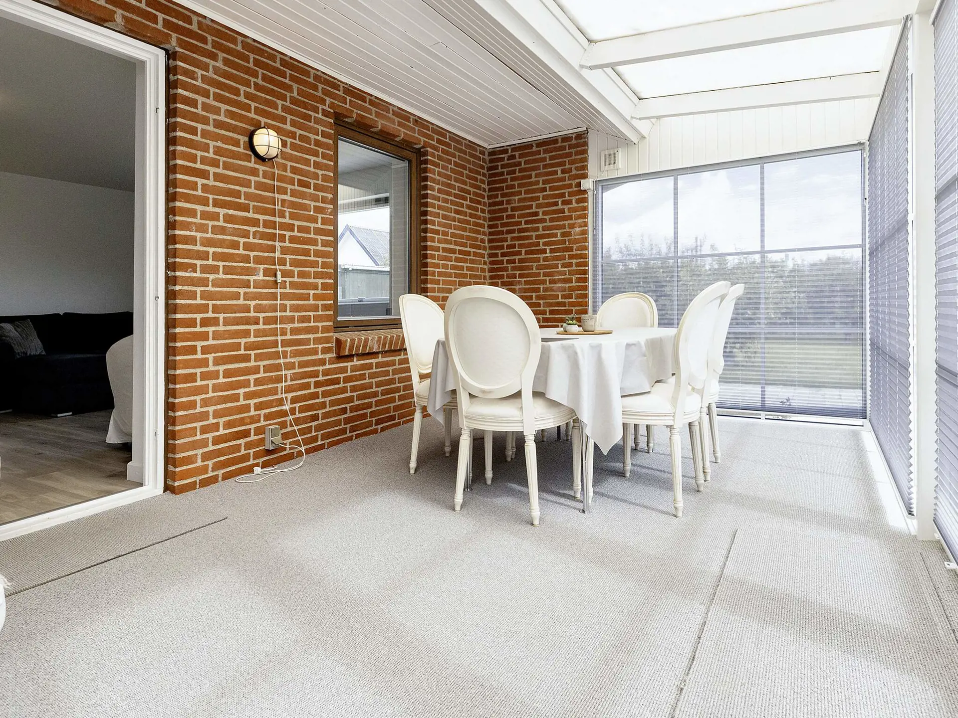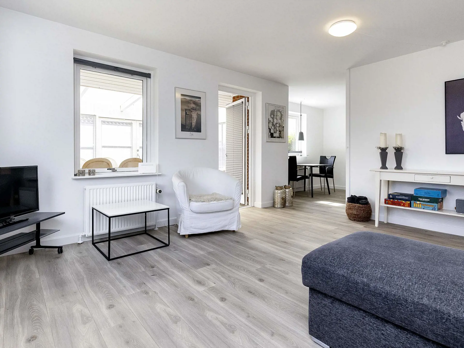 In Karrebæksminde/Vesterhave liegt dieses Reihenhaus zentral in einem Ferienhausgebiet. Das Reihenhaus ist mit einer Küche ausgestattet, in der sich ein kleiner Essbereich befindet. Die Küche steht in offener Verbindung zum Wohnzimmer, das über ein Schlafsofa/Doppelbett verfügt. Im Wohnzimmer gibt es einen Fernseher mit Chromecast, damit Sie Ihre eigenen Streaming-Dienste nutzen können. Vom Wohnzimmer aus hat man Zugang zu einem Wintergarten. Es gibt ein separates Schlafzimmer mit Doppelbett und ein Badezimmer mit Toilette, Waschbecken, Dusche, Waschmaschine und Wäschetrockner.
