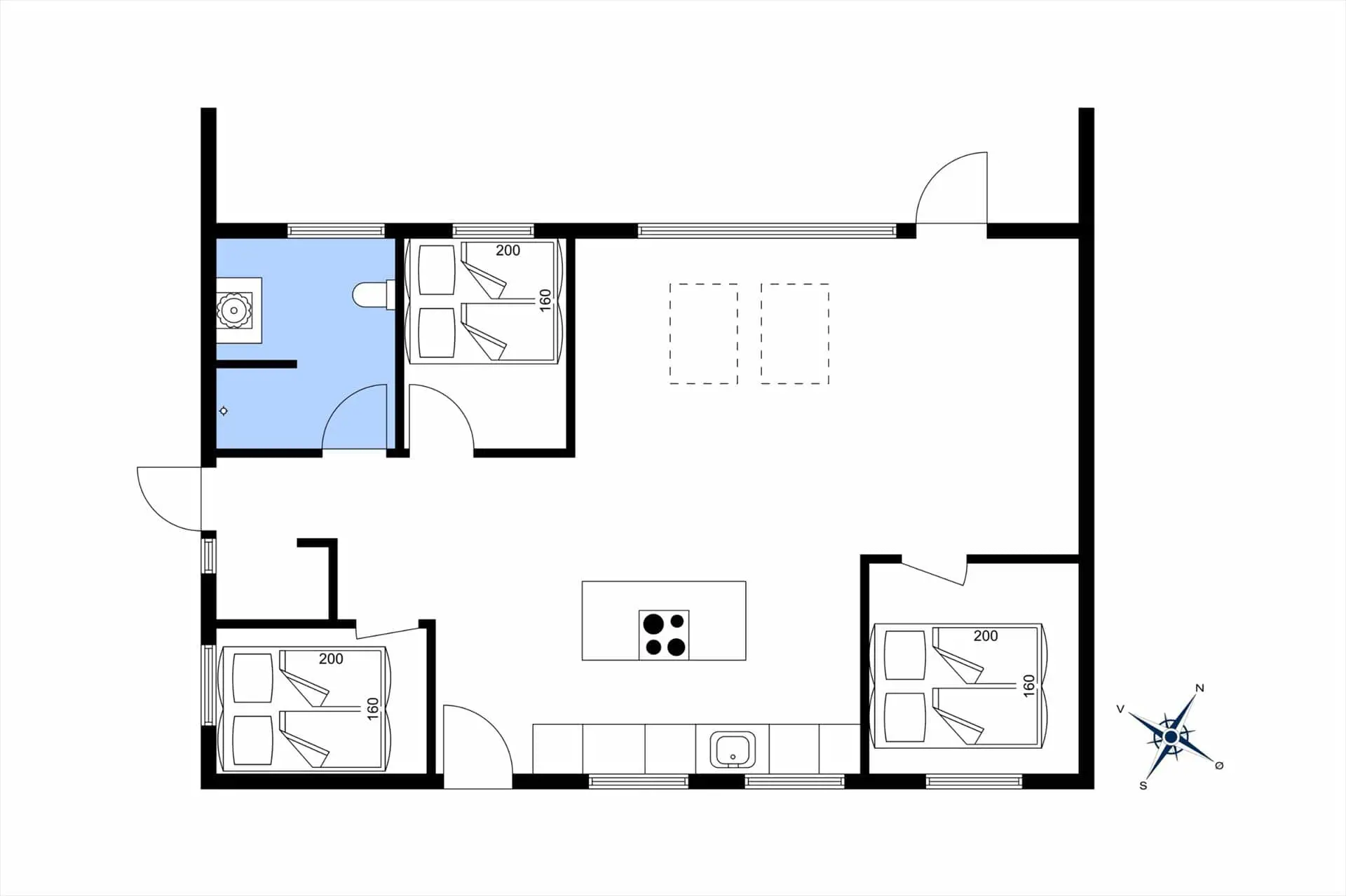 Dieses Ferienhaus wurde im Jahr 2021 einer umfassenden Renovierung unterzogen, instand gesetzt und mit einer geschmackvollen Einrichtung versehen. Dies gilt selbstverständlich auch für den offen mit der Küche kombinierten Wohnraum. Die helle, offene Küche verwöhnt mit einem direkten Zugang zur Terrasse. Sie beinhaltet einen Backofen, Kochplatten, einen Geschirrspüler und einen Kühlschrank mit Gefriermöglichkeit. Der Wohnraum besticht mit hohen Decken und einer offenen Balkenlage. Von hier aus genießen Sie ebenfalls direkten Zugang zur Terrasse. Für entspannte Stunden im Kreise Ihrer Lieben sorgen ein guter Essplatz, ein Chaiselongue-Sofa und Lehnstühle sowie ein Fernseher mit dänischen Sendern und Chromecast zum Streamen von Filmen, Serien und dergleichen. Das ansprechende Badezimmer begrüßt Sie mit einer Duschnische. Ihnen stehen drei Schlafzimmer mit je einem Doppelbett zur Verfügung. Das schöne Ferienhaus wird mittels einer Wärmepumpe und Elektroheizkörpern beheizt.