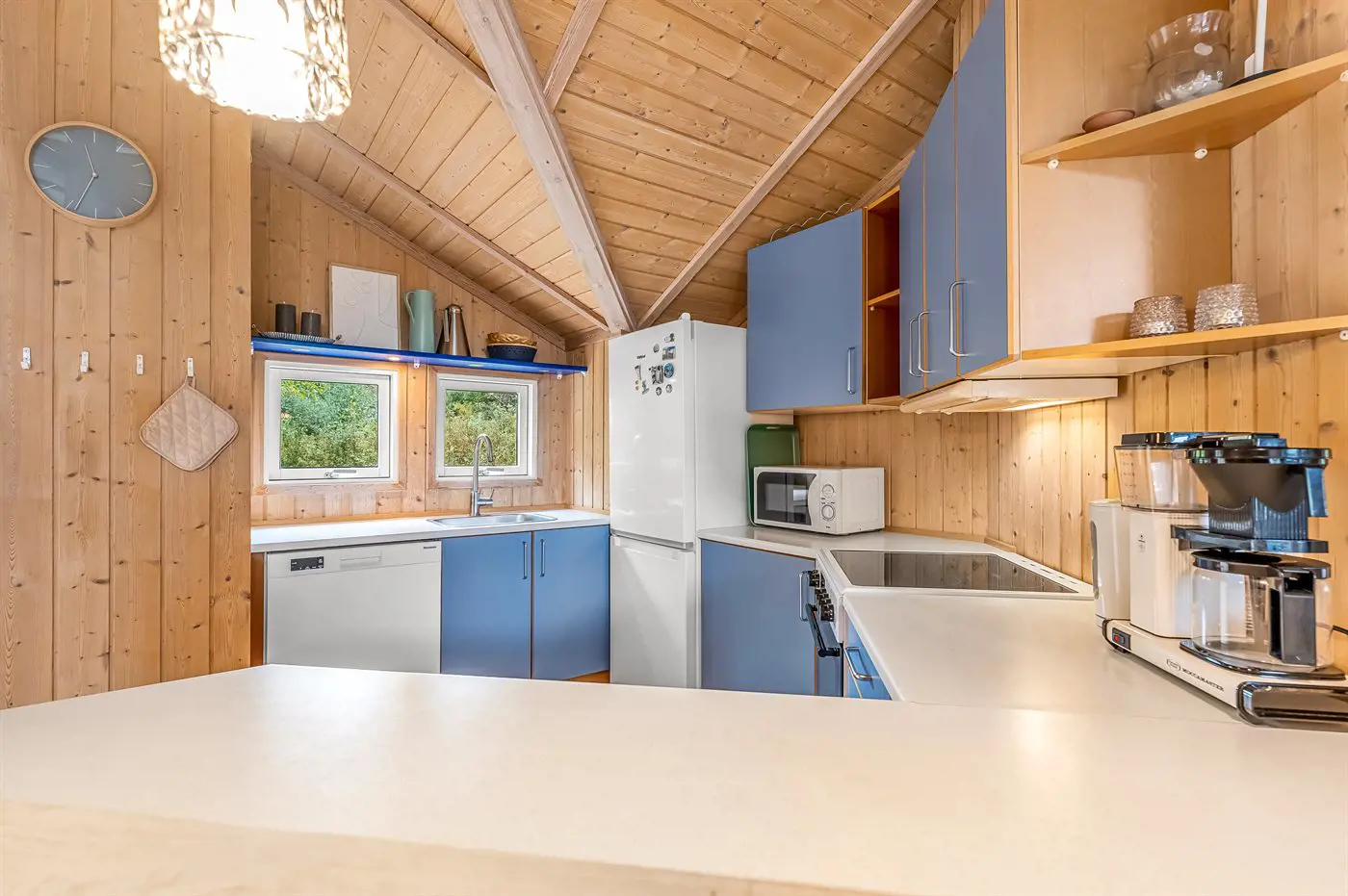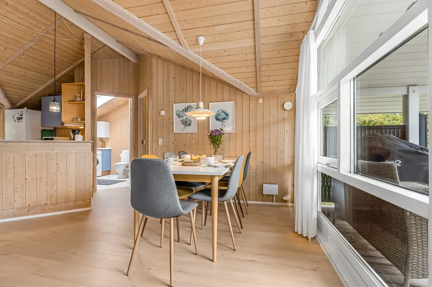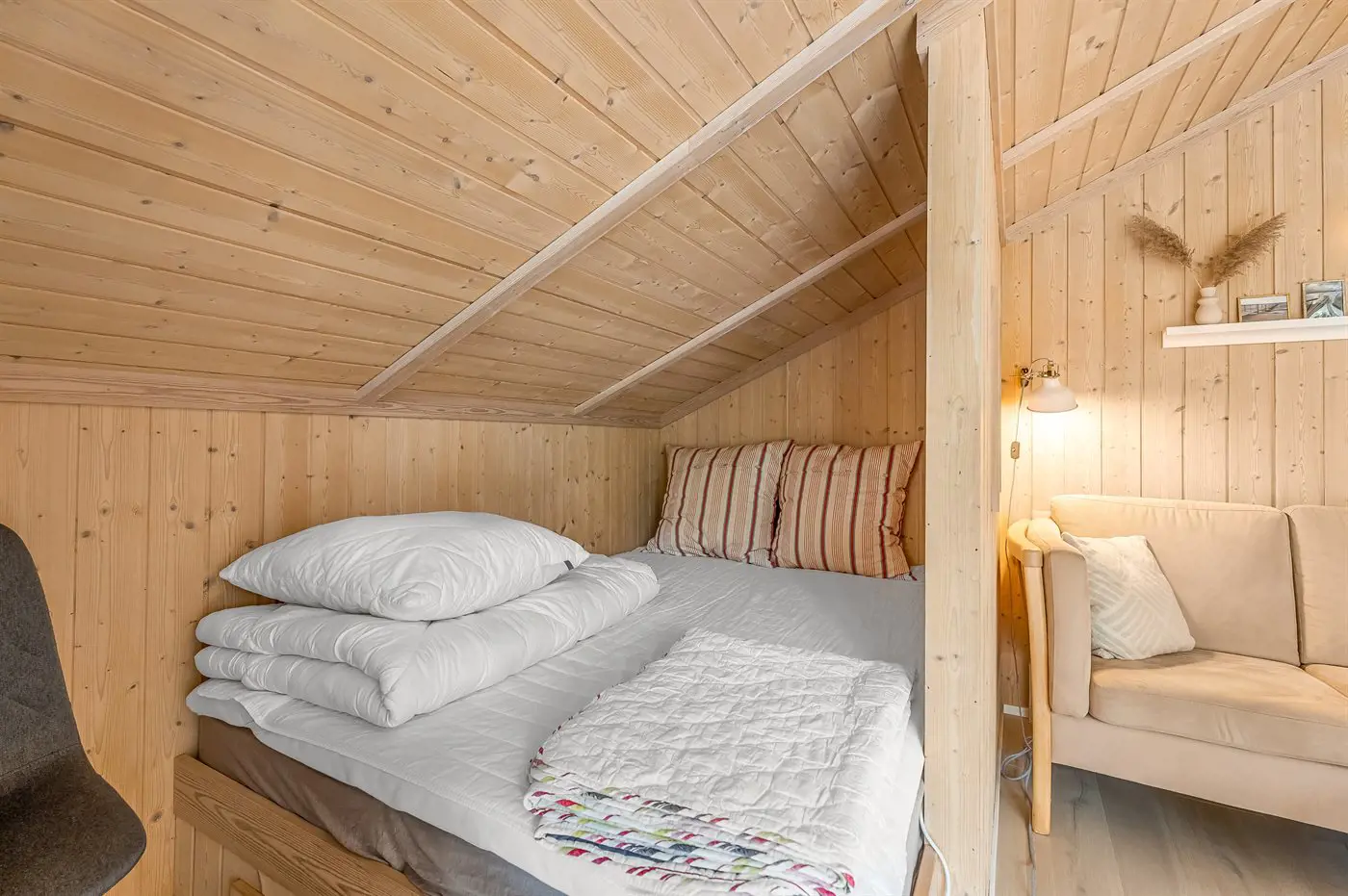 Das Ferienhaus liegt schön und ganz nah am Wasser. Es lädt euch zu Gemütlichkeit, Erlebnissen und Entspannung ein. Die Ferienunterkunft besteht aus einem Haupthaus und einem hellen Gästehaus mit eigenem Badezimmer. Im Haupthaus erwartet euch eine große und geschmackvolle Wohnküche – herrlich erhellt durch das Tageslicht, das durch die großen bodentiefen Fenster strömt. Außerdem gibt es ein schönes Wohnzimmer. Die Schlafplätze verteilen sich auf ein Doppelbett im Gästehaus sowie 4 Einzelbetten und ein Alkoven im Haupthaus.