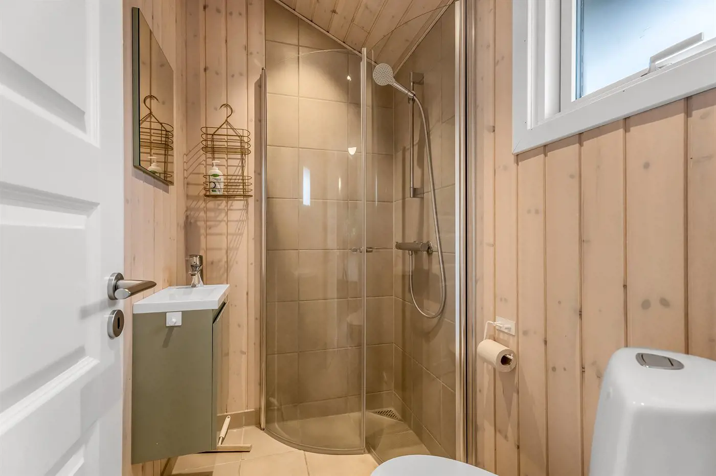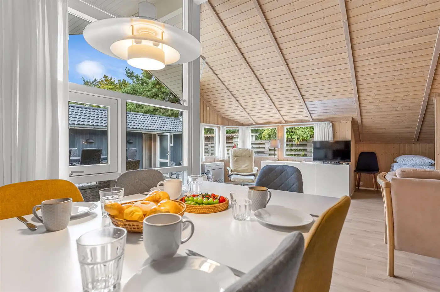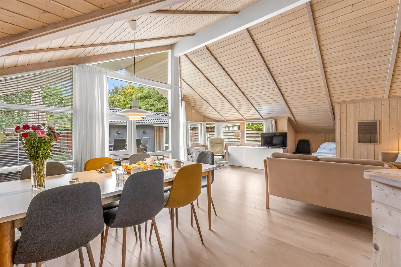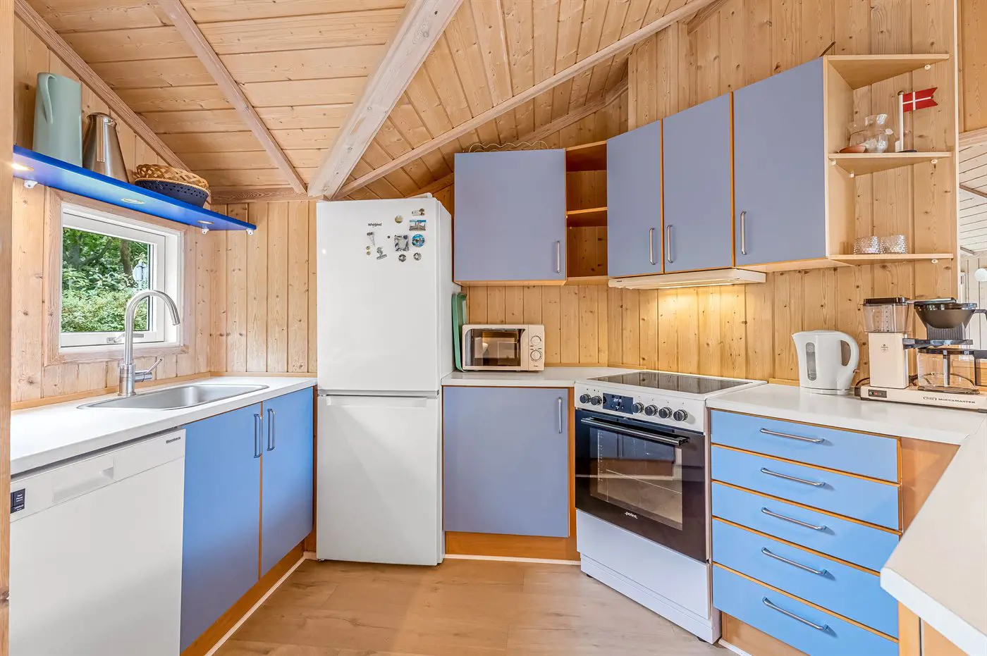 Das Ferienhaus liegt schön und ganz nah am Wasser. Es lädt euch zu Gemütlichkeit, Erlebnissen und Entspannung ein. Die Ferienunterkunft besteht aus einem Haupthaus und einem hellen Gästehaus mit eigenem Badezimmer. Im Haupthaus erwartet euch eine große und geschmackvolle Wohnküche – herrlich erhellt durch das Tageslicht, das durch die großen bodentiefen Fenster strömt. Außerdem gibt es ein schönes Wohnzimmer. Die Schlafplätze verteilen sich auf ein Doppelbett im Gästehaus sowie 4 Einzelbetten und ein Alkoven im Haupthaus.